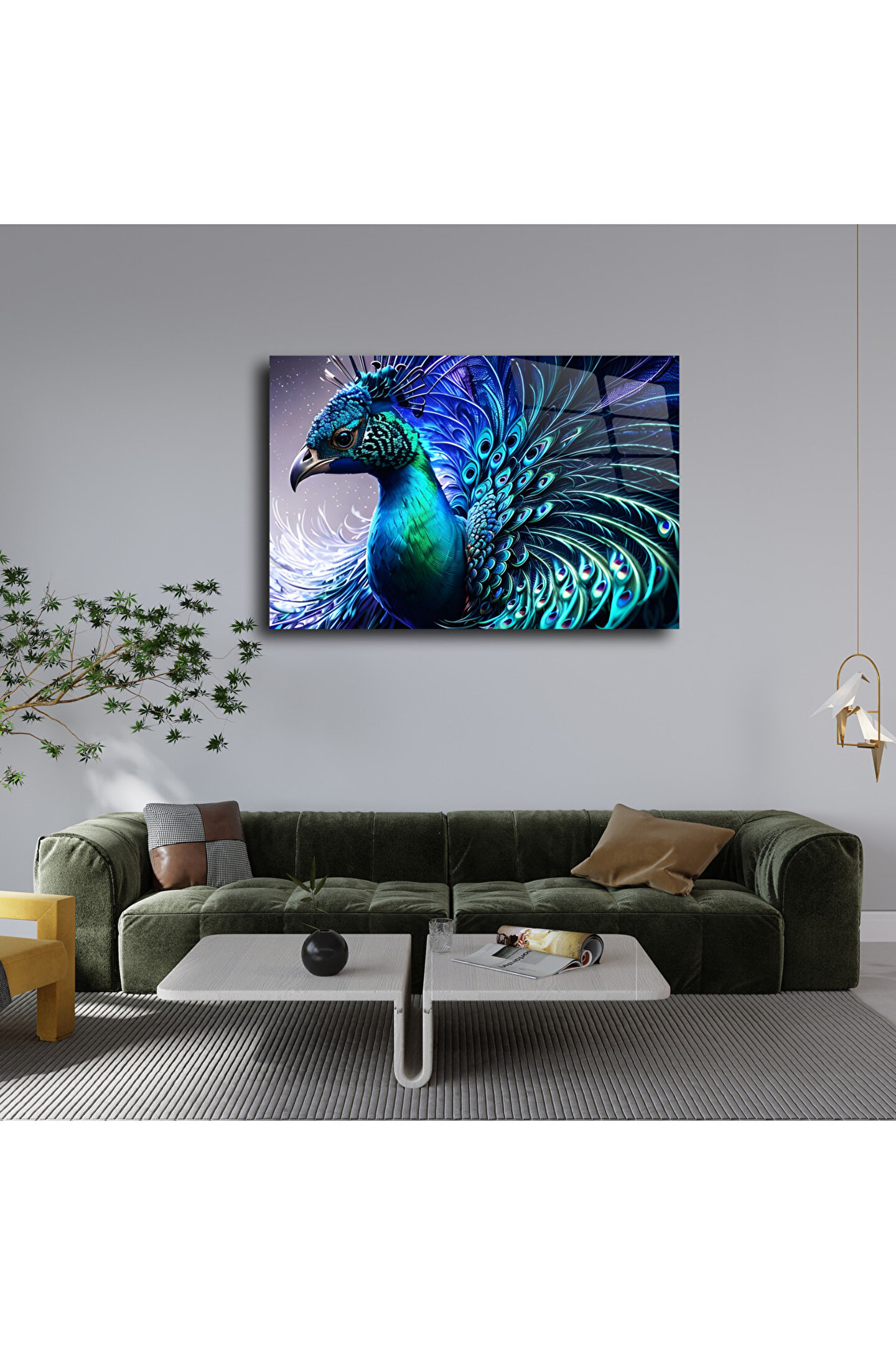 LEYLASER Tavus Kuşu Cam Tablo Duvar Dekoru 1