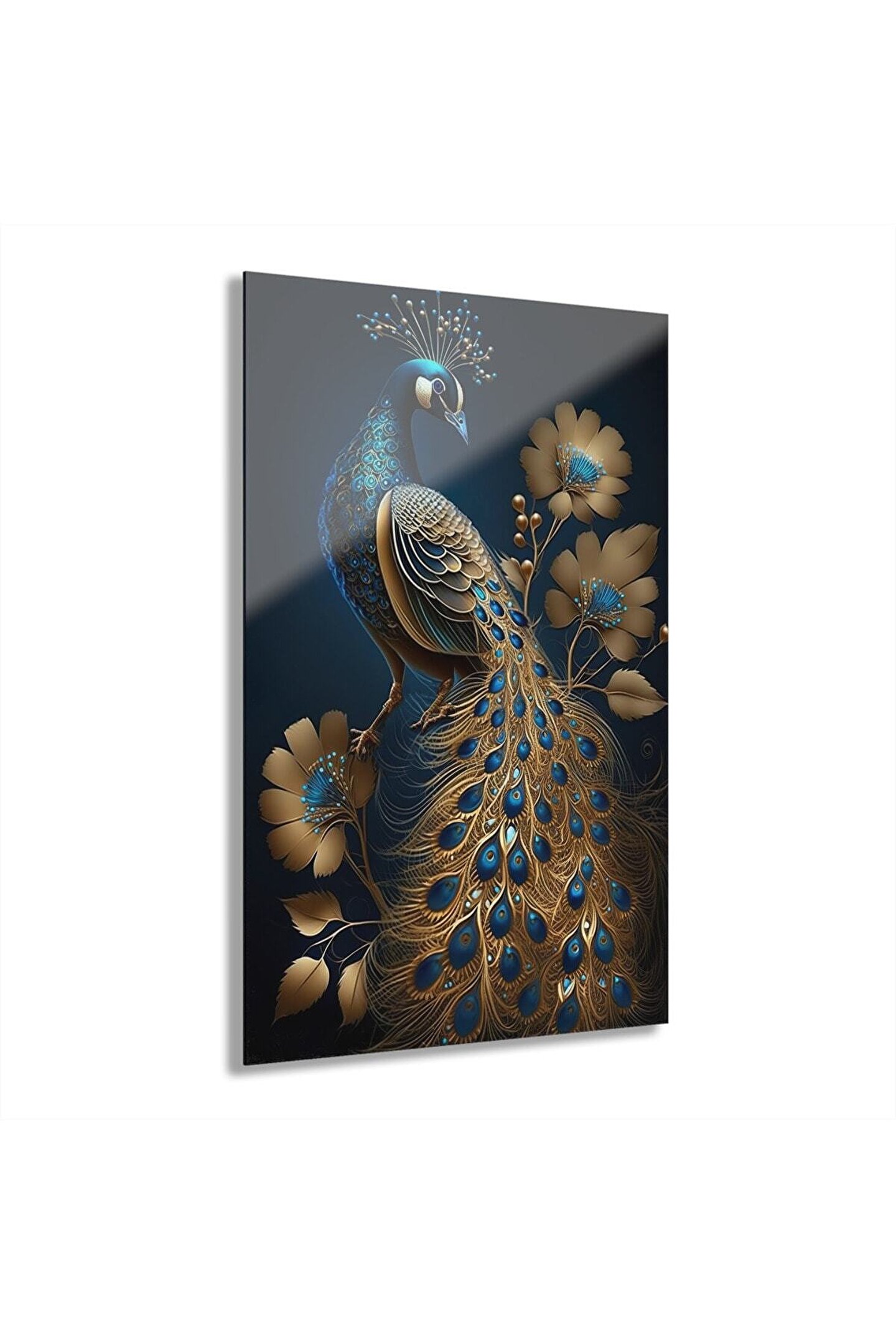 LEYLASER Tavus Kuşu Cam Tablo Duvar Dekoru 2