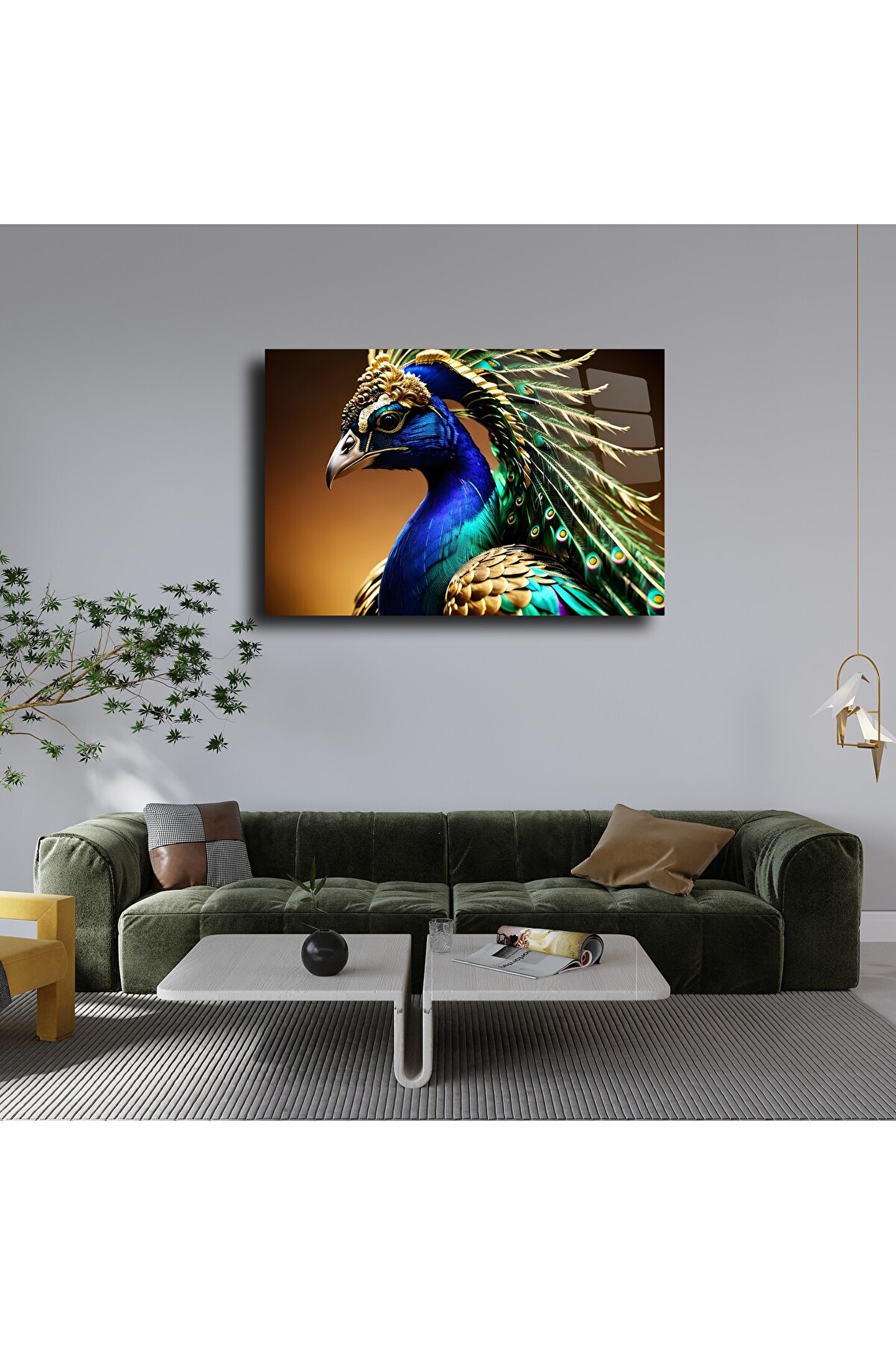LEYLASER Tavus Kuşu Cam Tablo Duvar Dekoru 2