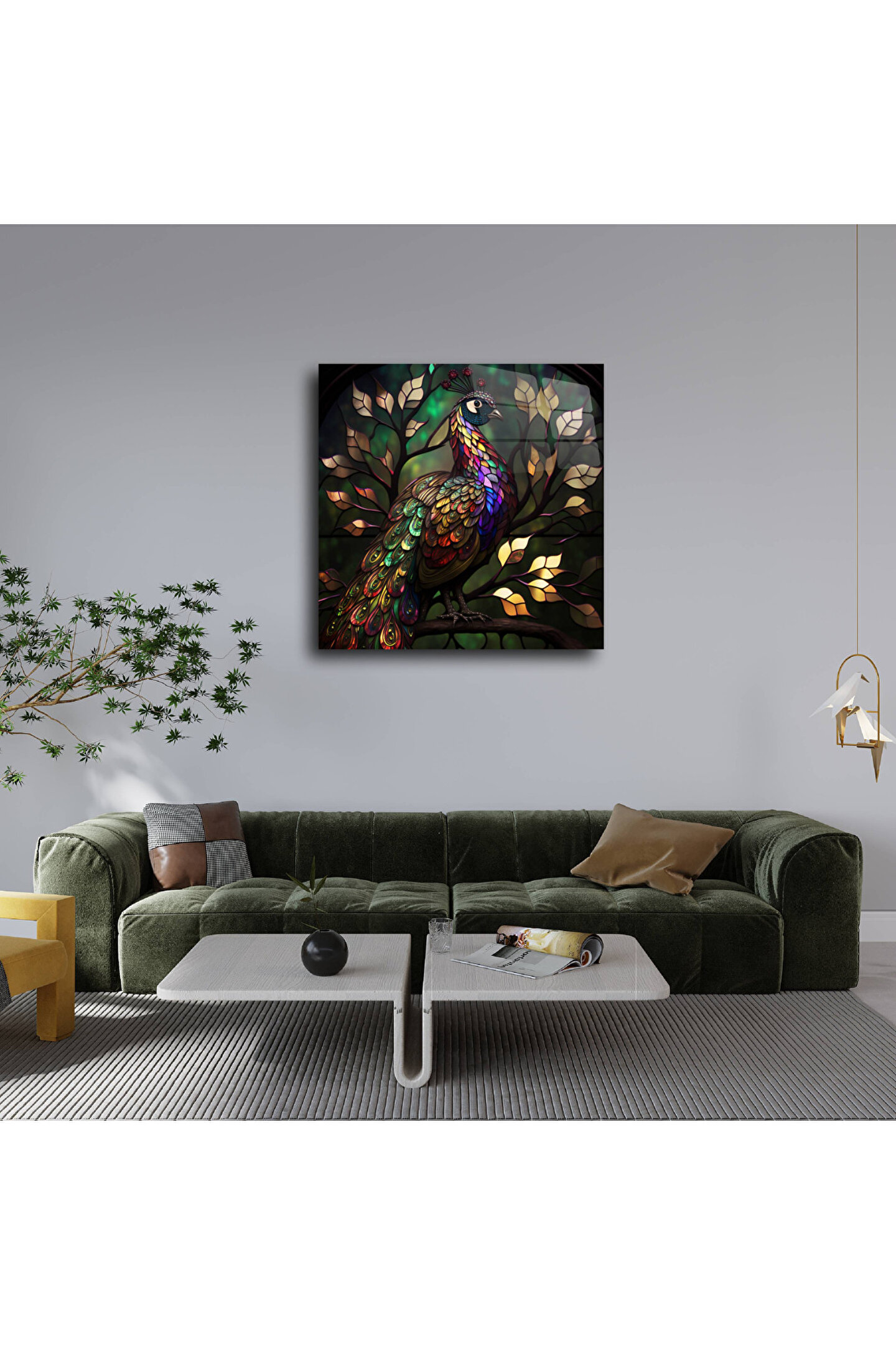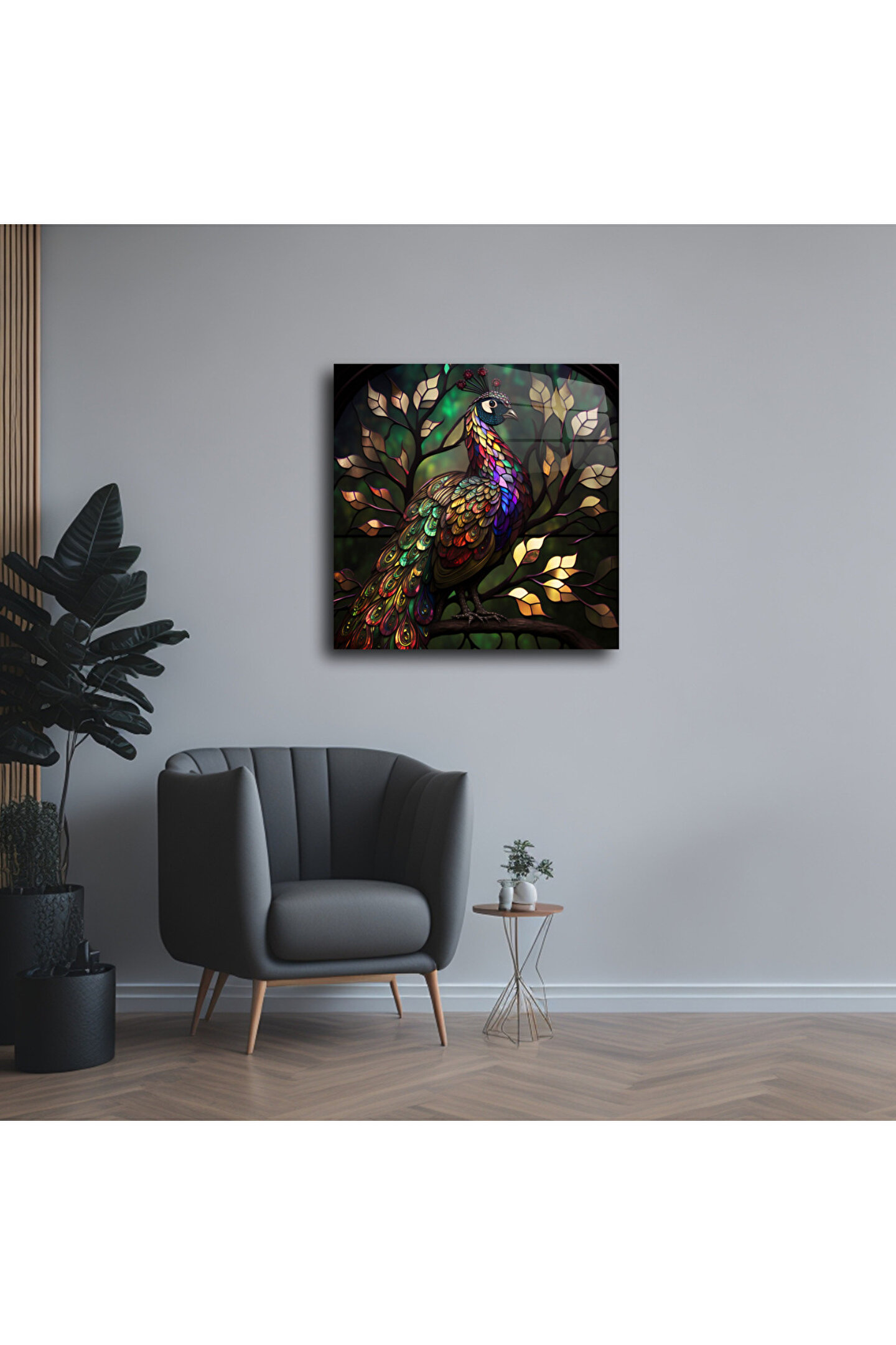 LEYLASER Tavus Kuşu Cam Tablo Duvar Dekoru 3