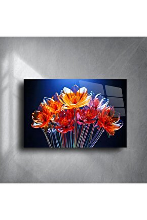 Bu etkileyici cam tablo, gece fonu üzerinde ışıldayan cam çiçek buketiyle büyüleyici bir atmosfer yaratıyor. Parlak cam yüzey ve derinlikli 3D çiçek formu, izleyeni içine çeken zarif bir sanat eserine dönüşüyor.