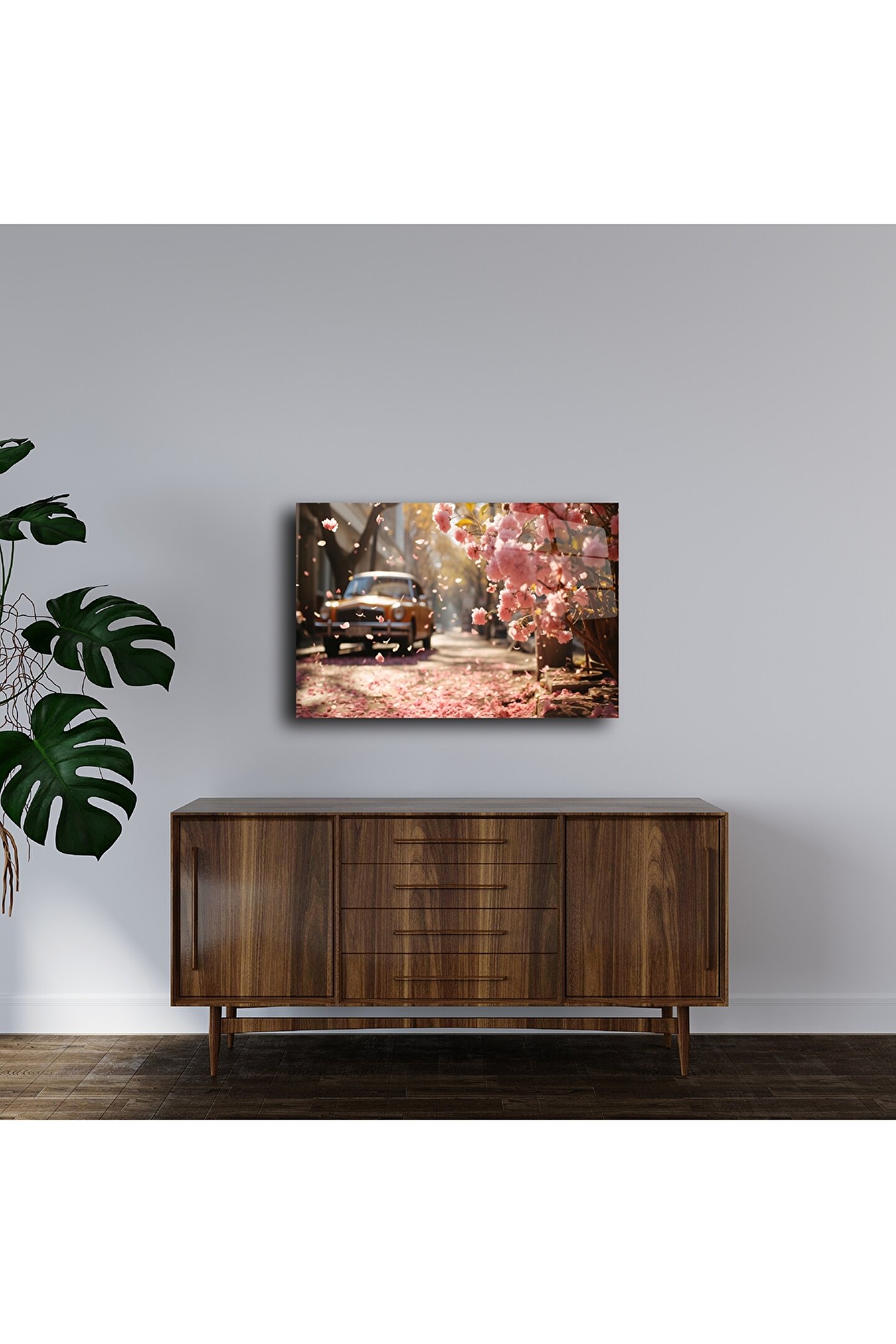 Baharın nostaljik bir dokunuşla buluştuğu bu etkileyici Vintage Çiçekli Manzara Metal Poster, duvarlarınıza yaşam ve anlam katar. Kiraz çiçeklerinin zarafeti ile retro bir arabanın sıcak ambiyansı birleşerek estetik bir kaçış hissi yaratır. Metal yüzey üzerindeki canlı detaylar, gün ışığında parlayan yapraklarla etkileyici bir derinlik hissi sunar.
