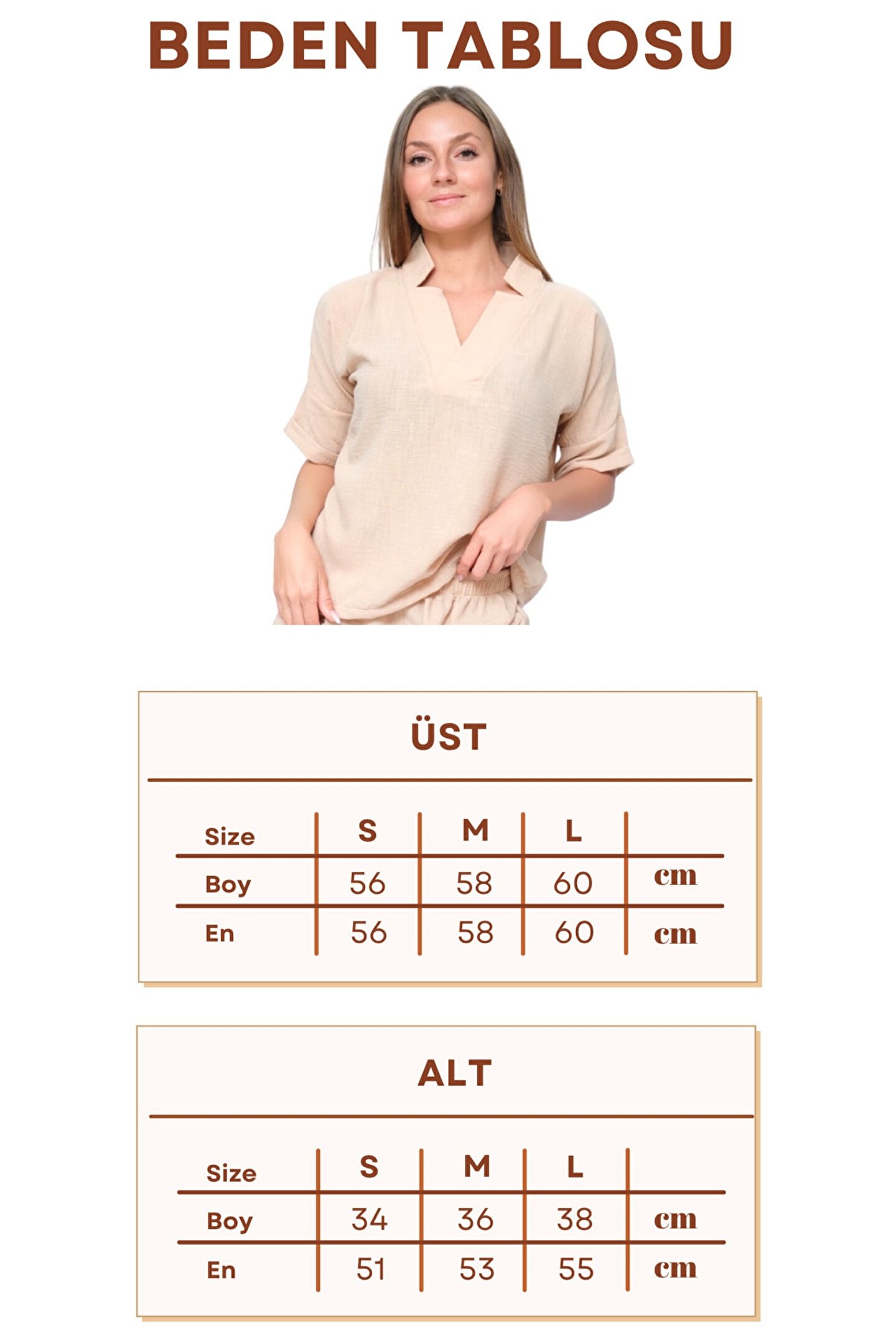 Rahat ve şık bir görünüm için ideal, günlük kullanıma uygun keten t; shirt; şort eşofman takımı; Regular boy kesimi ile her vücut tipine uyum sağlar ve konforlu bir kullanım sunar; İnce yapısıyla hafif ve nefes alabilen kumaşı, sıcak yaz günlerinde serinlik hissi verir; Truvakar kol tasarımı modern ve trend bir görünüm kazandırırken, yarasa kol kesimi hareket özgürlüğü sağlar; Oversize kalıbı sayesinde rahat bir oturuş sunar ve geniş paça tasarımı modern bir siluet oluşturur; Düz deseniyle sade ve zamansız bir stil yaratırken, v yaka detayı ile şıklığı tamamlar; Dokuma kumaş tipi dayanıklılığı arttırarak uzun süreli kullanım imkanı tanır; Beli lastikli yapısı sayesinde kolayca giyilip çıkartılabilir ve mükemmel uyumu garanti eder; Çift cepli tasarım pratiklik kazandırarak küçük eşyalarınız için ekstra alan sunar; Basic koleksiyonun parçası olarak her gardıropta temel;