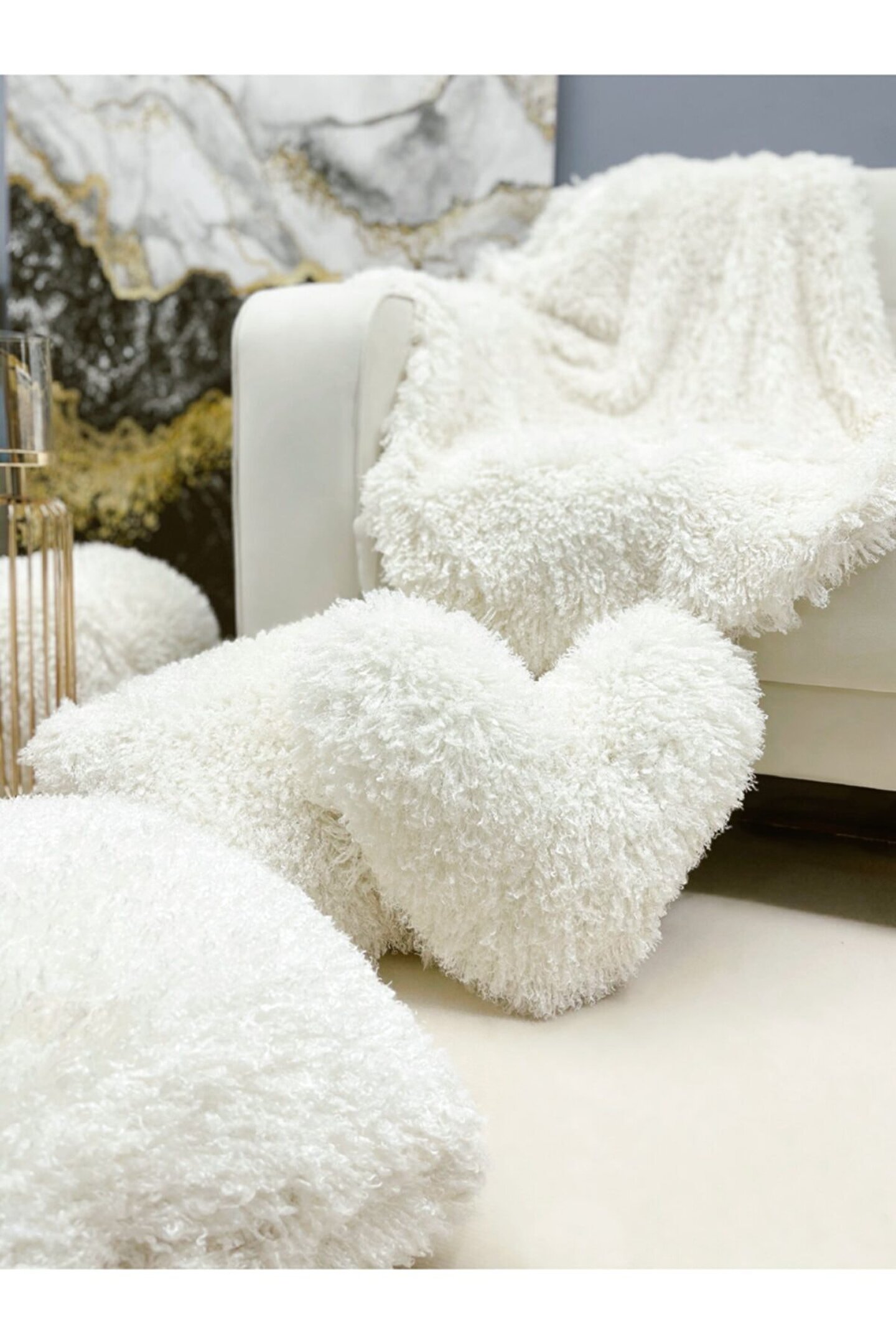 Beyaz Floş Kalp Dekoratif Yastık 45x45 cm Ürün iç dolgusu ile birlikte gönderilmektedir. ; İç dolgusu boncuk elyaftır. ; 30 derece hassas yıkama önerilmektedir, Ürün 1 adet gönderilmektedir.;