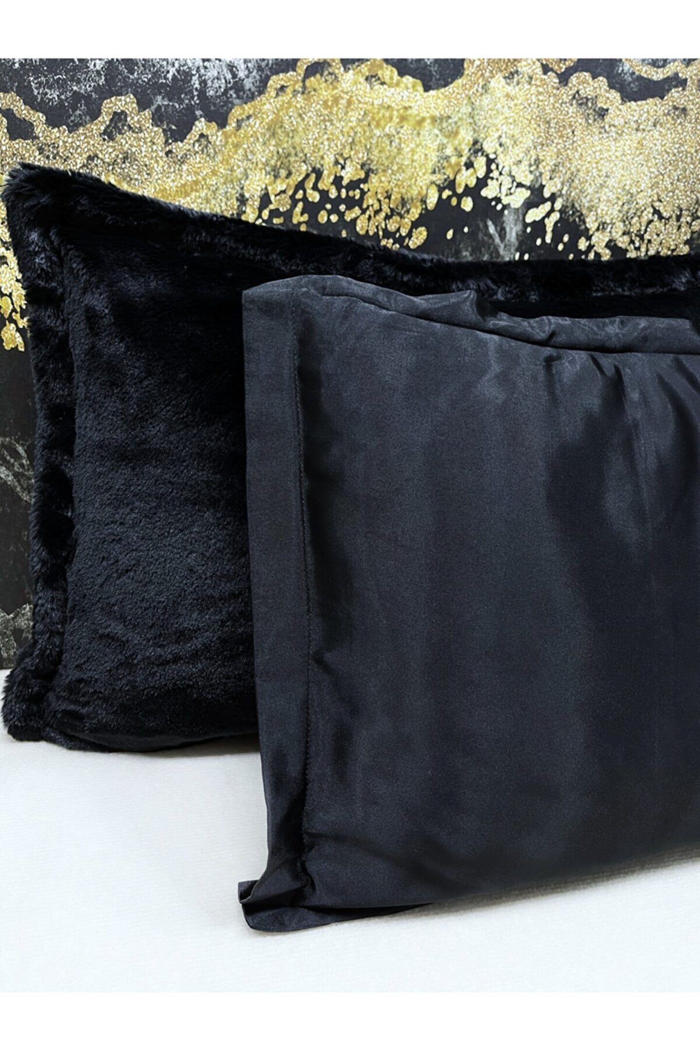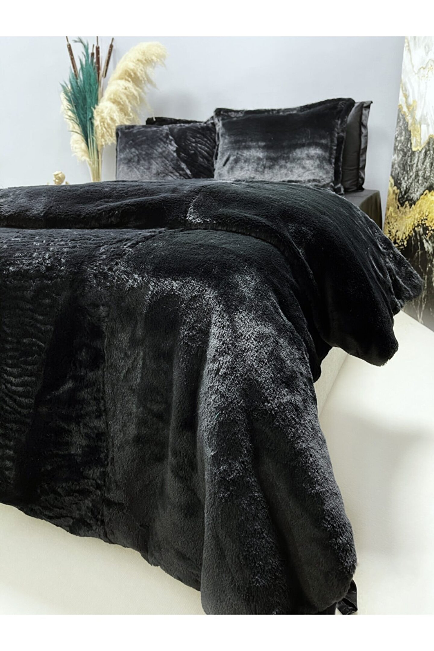 siyah suni tavşan tüyü nevresim takımı 2 kişiliktir Yorgan kılıfı Dış kumaş yüksek kaliteli kopmaz suni tavşan tüyü Yorgan kılıfı İç astarı pamuk satendir Çarşaf ipek satendir Ürün içeriği 2 adet suni tavşan tüyü yastık kılıfı 50x70 cm 2 adet ipek saten yastık kılıfı 50x70 cm 1 adet ipek saten çarşaf 240x260 cm 1 adet yorgan kılıfı 220x240 cm Yastıkların İç dolgusu mevcut değildir Yorgan kılıfı çift kat astarlıdır Kumaş suni kürktür kopma yapmaz Kılıflar Yüksek kaliteli fermuarı sayesinde kolay kullanım sağlar 30 derece hassas yıkama önerilmektedir