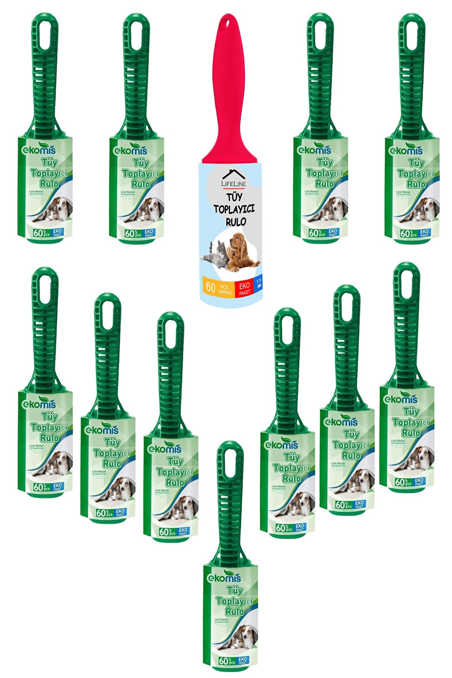 Toplam 12 Adet Tüy Toplayıcı Rulo 1 Adet Life Line Tüy Toplayıcı Rulo 60 Yaprak 11 Adet Ekomis Tüy Toplayıcı Rulo 60 Yaprak