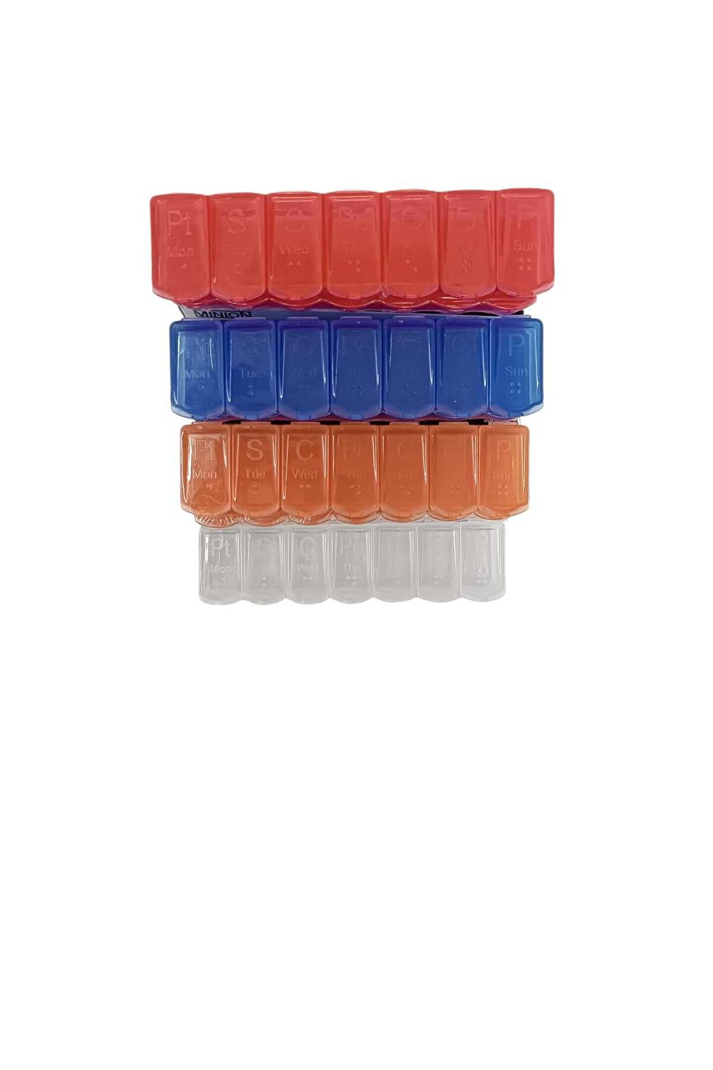 Ligorix haftalık ilaç saklama kutusu 4'lü Ligorix haftalık ilaç saklama kutusu 4 adet görme engelliler için kabartma yazılıdır. ; Ilaçları çantanızda veya cebinizde taşıyabileceğiniz ebatlarda pp malzemeden üretilmiştir. ; Çocuk emniyeti bulunduğundan kapağı arkaya doğru iterek açınız. ; Kanserojen madde içermez.;
