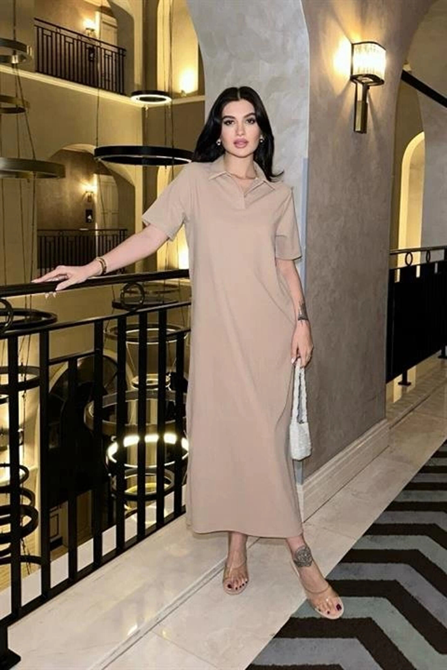 Manque Polo Yaka Yırtmaçlı Elbise 2689-8