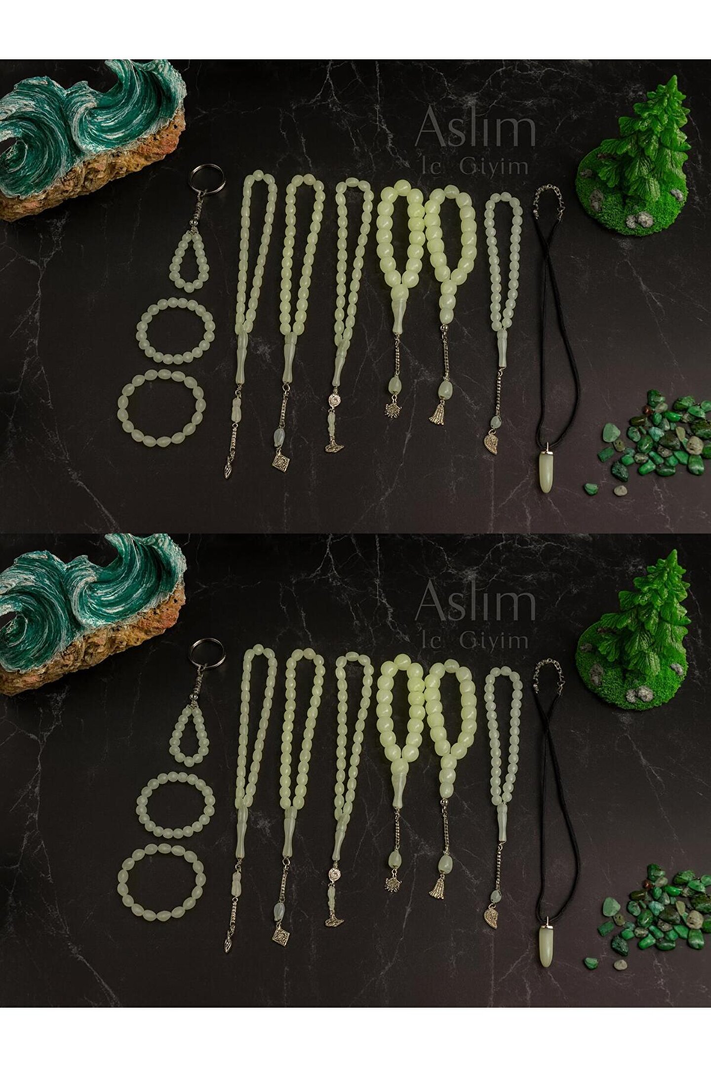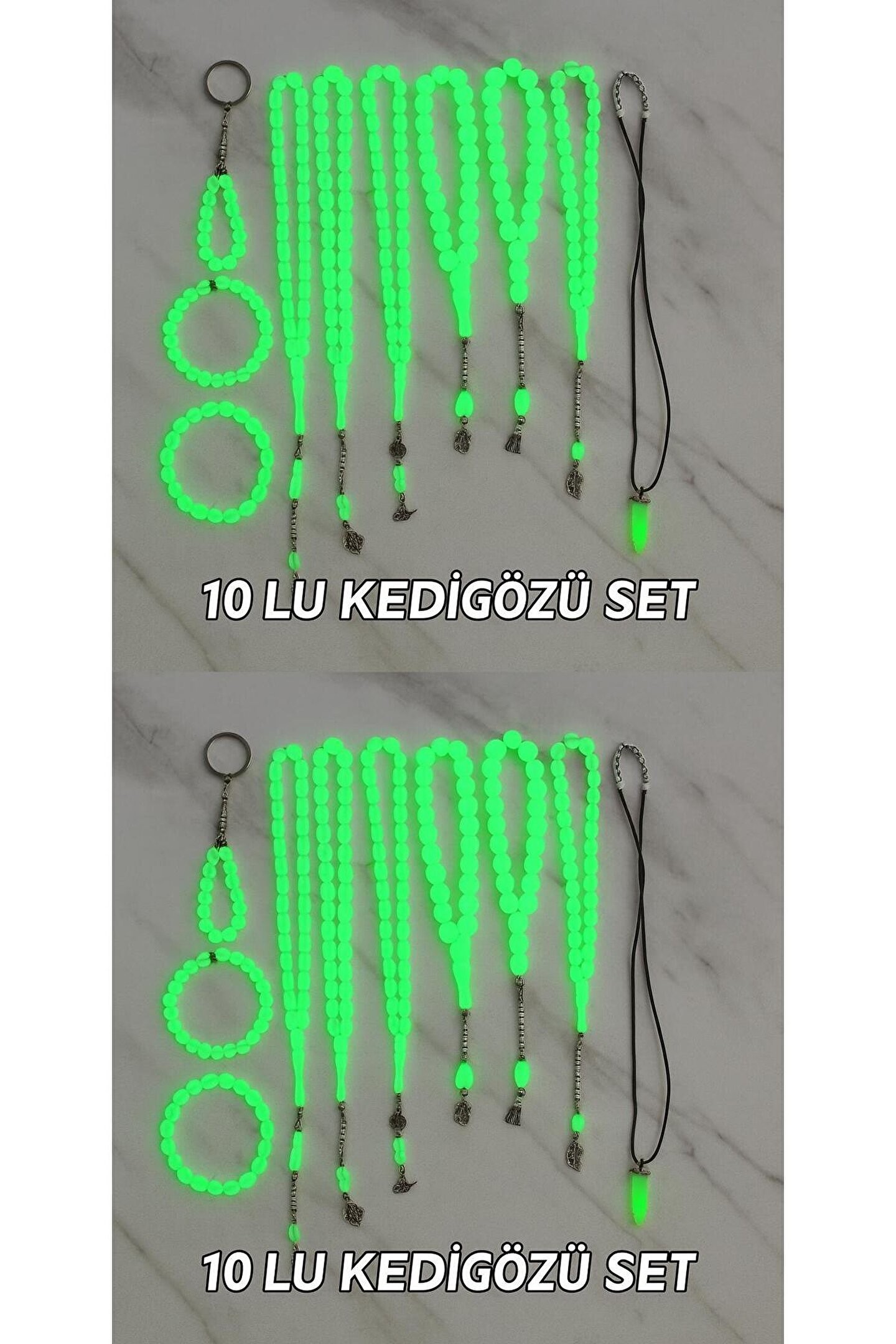 Fosforlu Kedigözü 20'li Set – Tesbih, Kolye, Bileklik ve Anahtarlık ✨ Karanlıkta Parlayan, Şık ve Özel Tasarım Hediye Seti ✨ Ürün İçeriği Bu özel set, zarif işçiliği ve fosforlu kedigözü taşlarının büyüleyici parıltısıyla hazırlanmıştır.; Akrilik monomerden üretilen taşlar, gündüz ışığında zarif bir parlaklık, karanlıkta ise göz alıcı bir ışıltı sunar.; Toplam 20 parçadan oluşan setin içeriği: Tesbihler (12 Adet) 4 Adet Efe Boy Tesbih (2 Küre Kesim, 2 Kapsül Kesim) 2 Adet Arpa Kesim Tesbih 2 Adet Damla Kesim Tesbih 2 Adet Kapsül Kesim Tesbih 2 Adet Beyzi Kesim Tesbih Takı ve Aksesuarlar (8 Adet) 2 Adet Kolye 2 Adet Arpa Kesim Bileklik 2 Adet Küre Kesim Bileklik 2 Adet Anahtarlık Toplamda 20 şık parça, hem kişisel kullanım hem de sevdiklerinize hediye için ideal.; Öne Çıkan Özellikler