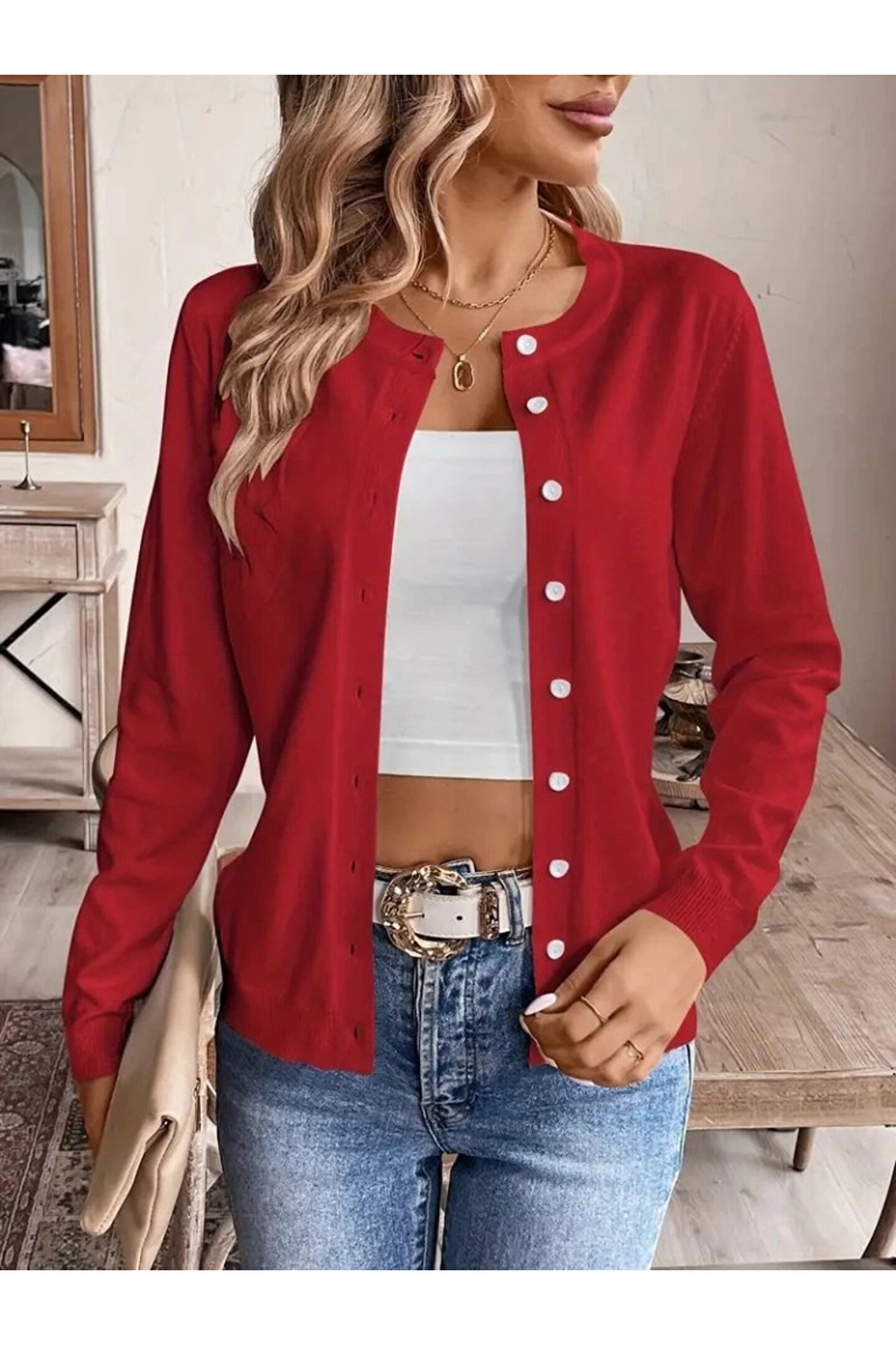 Kadın Uzun Kollu önden Düğmeli Triko Ceket