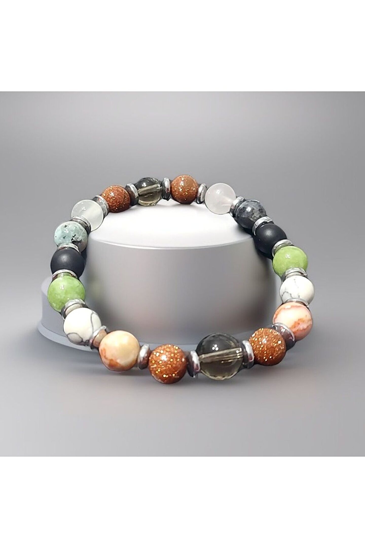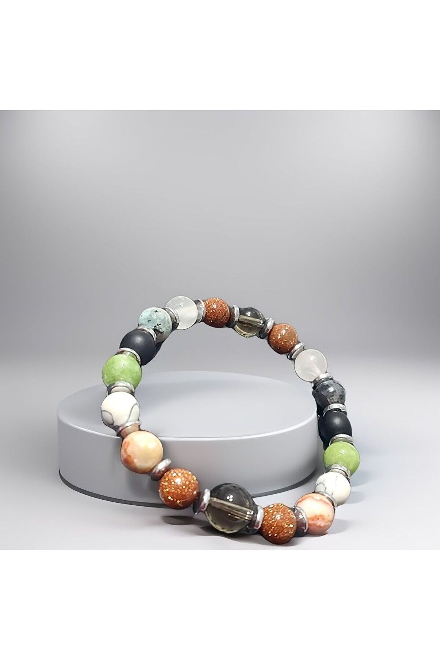 ??Doğal taşlar içerdiği mineraller sayesinde ve kendilerine has titreşimleri ile insan vücudunda olumlu etkilere sahiptirler. ??Taşlar bünyesinde bulundurduğu mineraller yardımı ile bedenimizde mineral bakımından eksiklikler var ise bunları tamamlamaya yardımcı olur. ??Vücudumuza yaydığı enerji ile çakraları dengelemeyi sağlarken ruh sağlığımızı korur, negatif enerjileri emip pozitif enerji yayar.??Değerli doğal taşların özellikleri ve faydalarını; %100 tedavi yöntemi olarak değil, sorunumuzun yada eksikliğimizin giderilmesinde yardımcı bir alternatif olarak değerlendirmeliyiz. ??Bu modelde esnek misina kullanılmıştır.??ürünlerimiz kendi tasarımımızdır. ??Doğaltaşlar kesim itibari ile renk ve şekil değişikliği gösterebilmektedir.