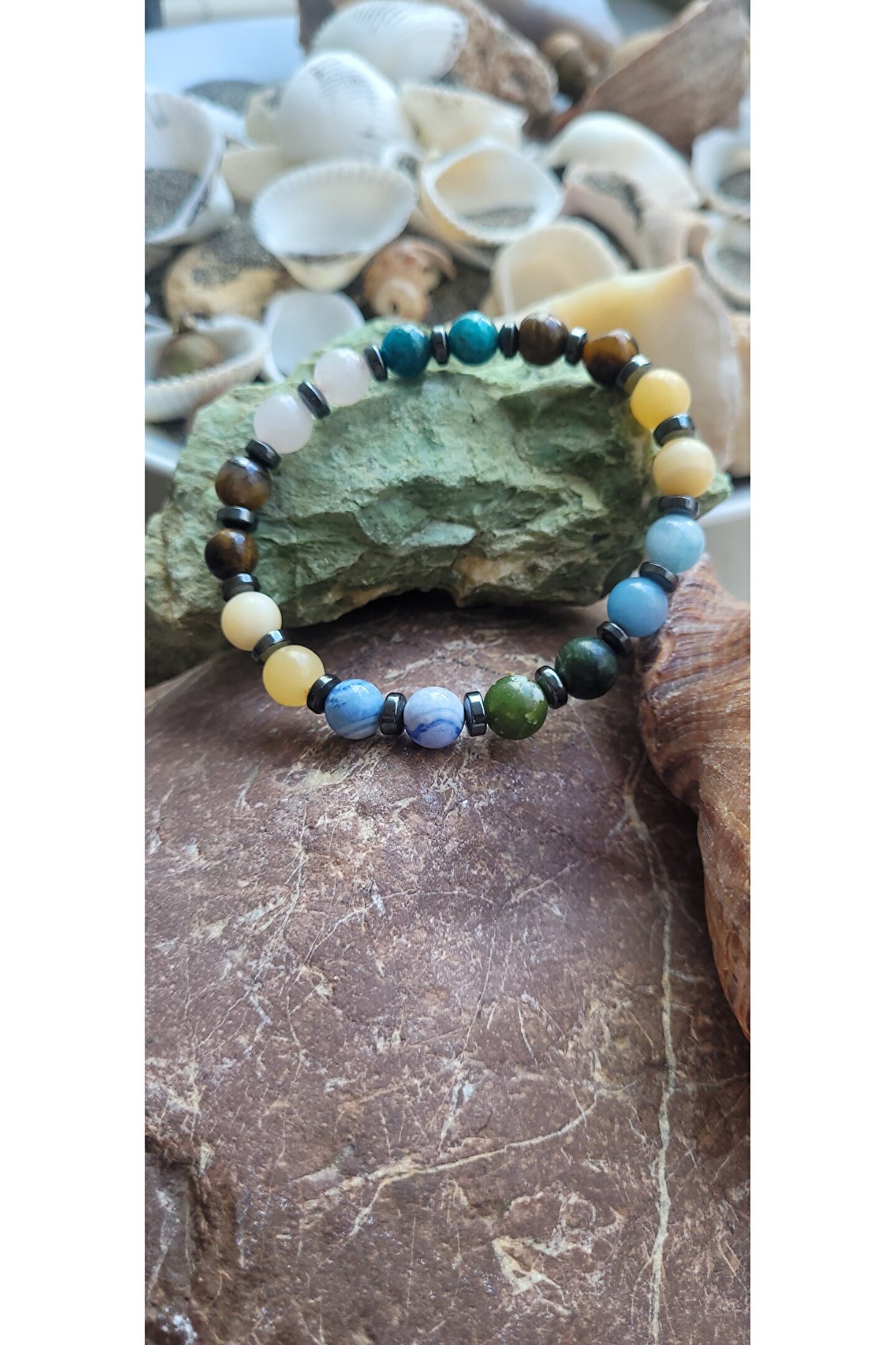 ??Doğal taşlar içerdiği mineraller sayesinde ve kendilerine has titreşimleri ile insan vücudunda olumlu etkilere sahiptirler. ??Taşlar bünyesinde bulundurduğu mineraller yardımı ile bedenimizde mineral bakımından eksiklikler var ise bunları tamamlamaya yardımcı olur. ??Vücudumuza yaydığı enerji ile çakraları dengelemeyi sağlarken ruh sağlığımızı korur, negatif enerjileri emip pozitif enerji yayar.??Değerli doğal taşların özellikleri ve faydalarını; %100 tedavi yöntemi olarak değil, sorunumuzun yada eksikliğimizin giderilmesinde yardımcı bir alternatif olarak değerlendirmeliyiz. ??Bu modelde esnek misina kullanılmıştır.??ürünlerimiz kendi tasarımımızdır. ??Doğaltaşlar kesim itibari ile renk ve şekil değişikliği gösterebilmektedir.