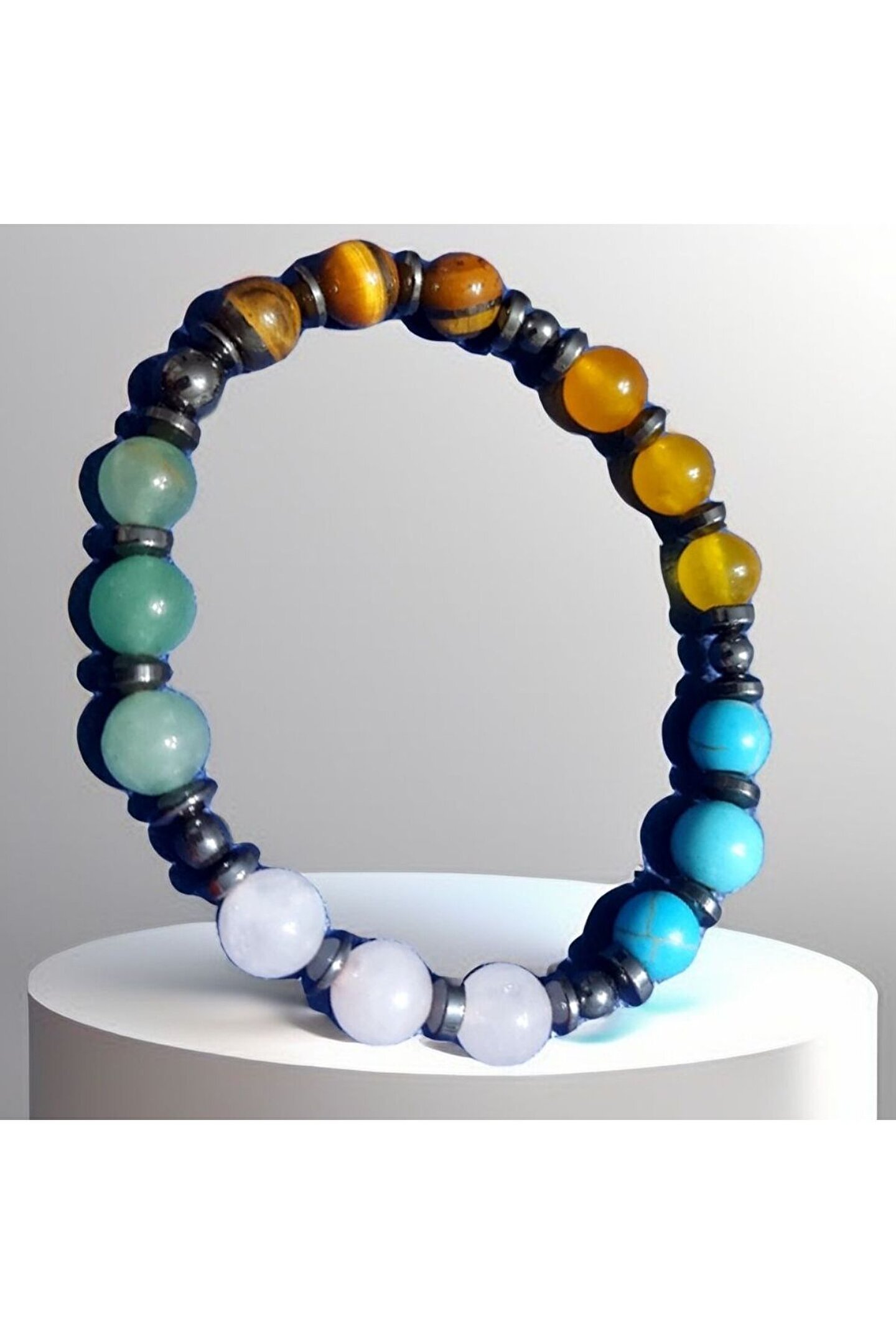 ??Doğal taşlar içerdiği mineraller sayesinde ve kendilerine has titreşimleri ile insan vücudunda olumlu etkilere sahiptirler. ??Taşlar bünyesinde bulundurduğu mineraller yardımı ile bedenimizde mineral bakımından eksiklikler var ise bunları tamamlamaya yardımcı olur. ??Vücudumuza yaydığı enerji ile çakraları dengelemeyi sağlarken ruh sağlığımızı korur, negatif enerjileri emip pozitif enerji yayar.??Değerli doğal taşların özellikleri ve faydalarını; %100 tedavi yöntemi olarak değil, sorunumuzun yada eksikliğimizin giderilmesinde yardımcı bir alternatif olarak değerlendirmeliyiz. ??Bu modelde esnek misina kullanılmıştır.??ürünlerimiz kendi tasarımımızdır. ??Doğaltaşlar kesim itibari ile renk ve şekil değişikliği gösterebilmektedir.
