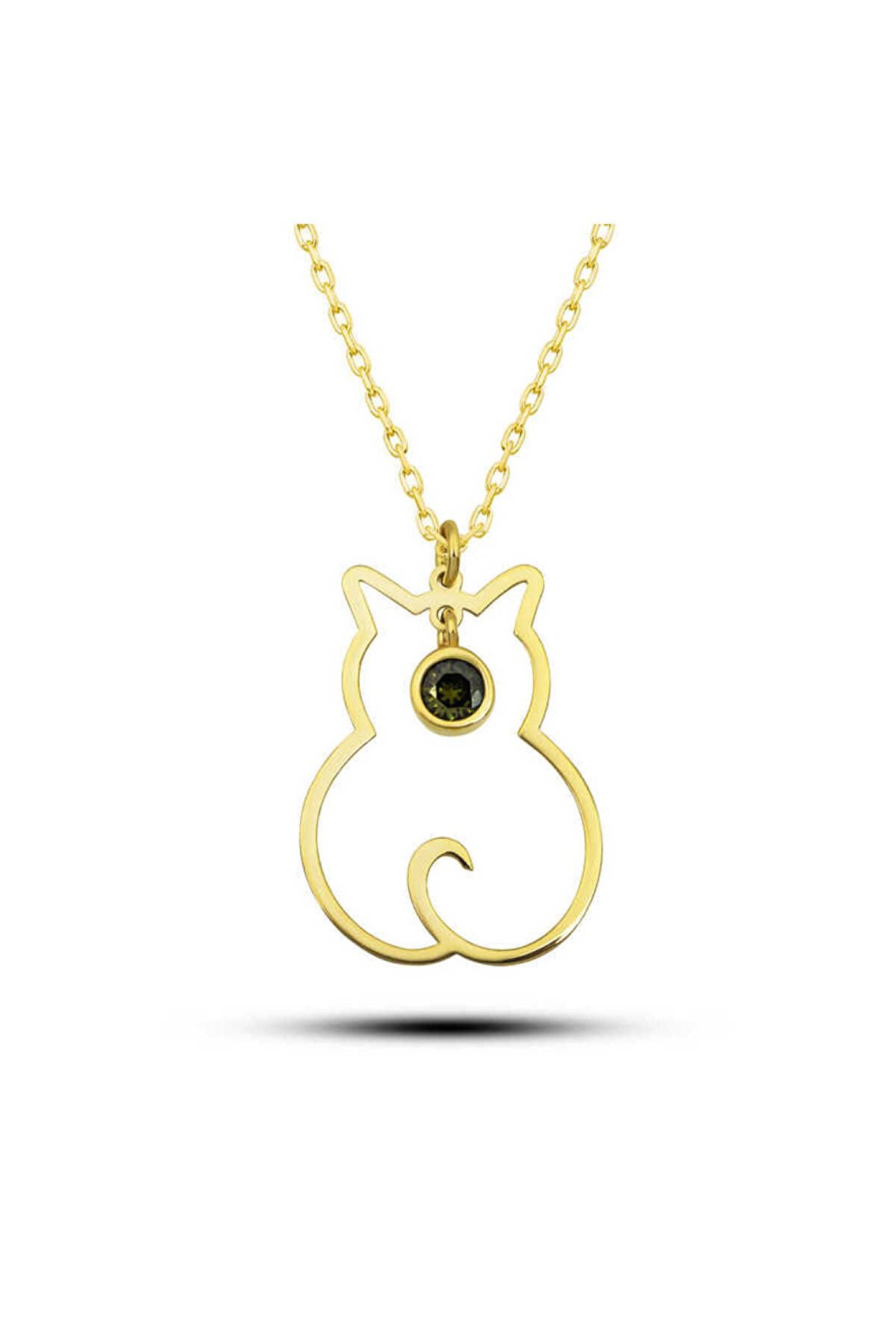 Samur Parti Parti Aksesuar & Kostüm 925 Ayar Gümüş Ağustos Ayı Doğum Taşı Kedi Kadın Kolye