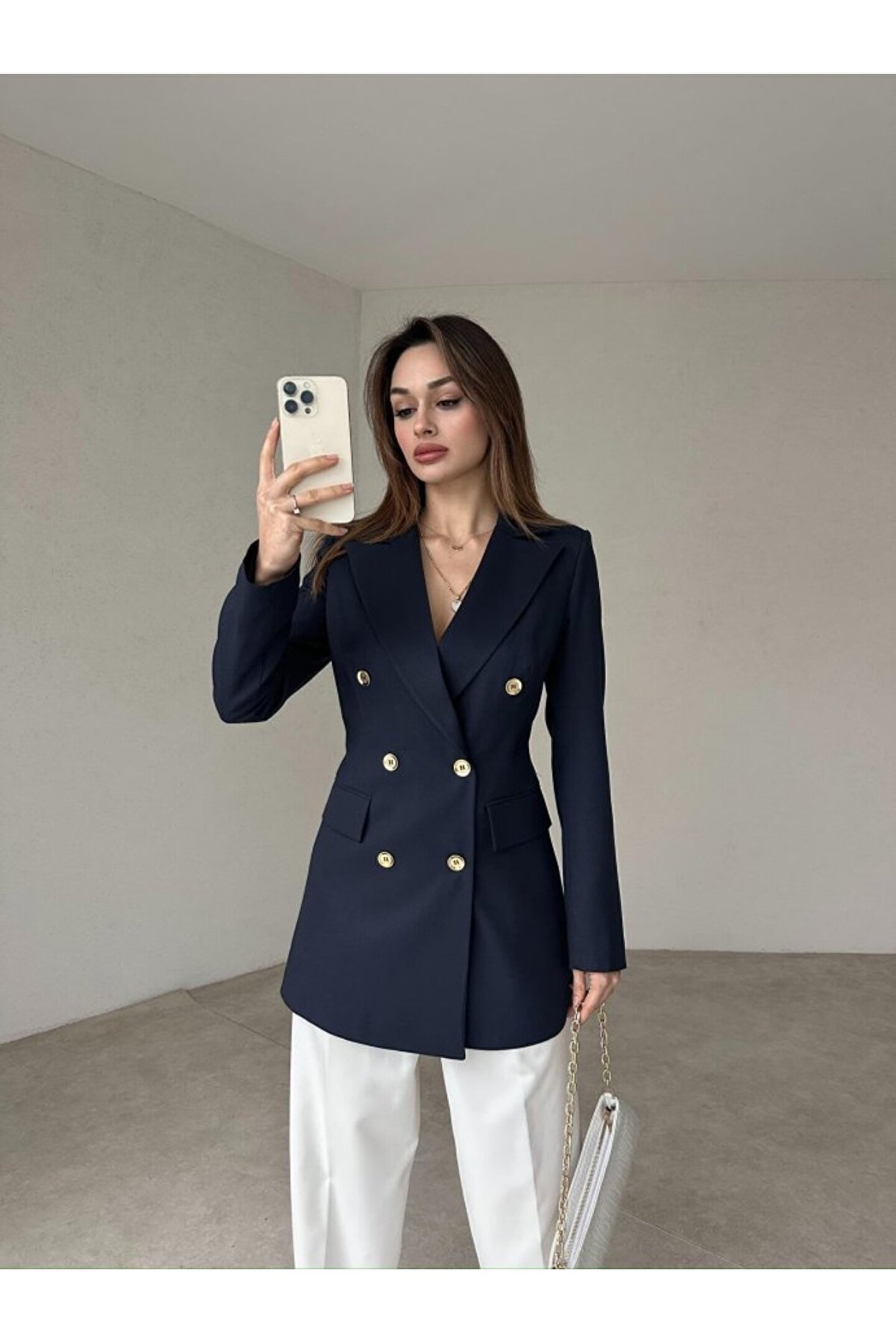 lolembutik Kadın Çift Düğme Atlas Kumaş Ceket