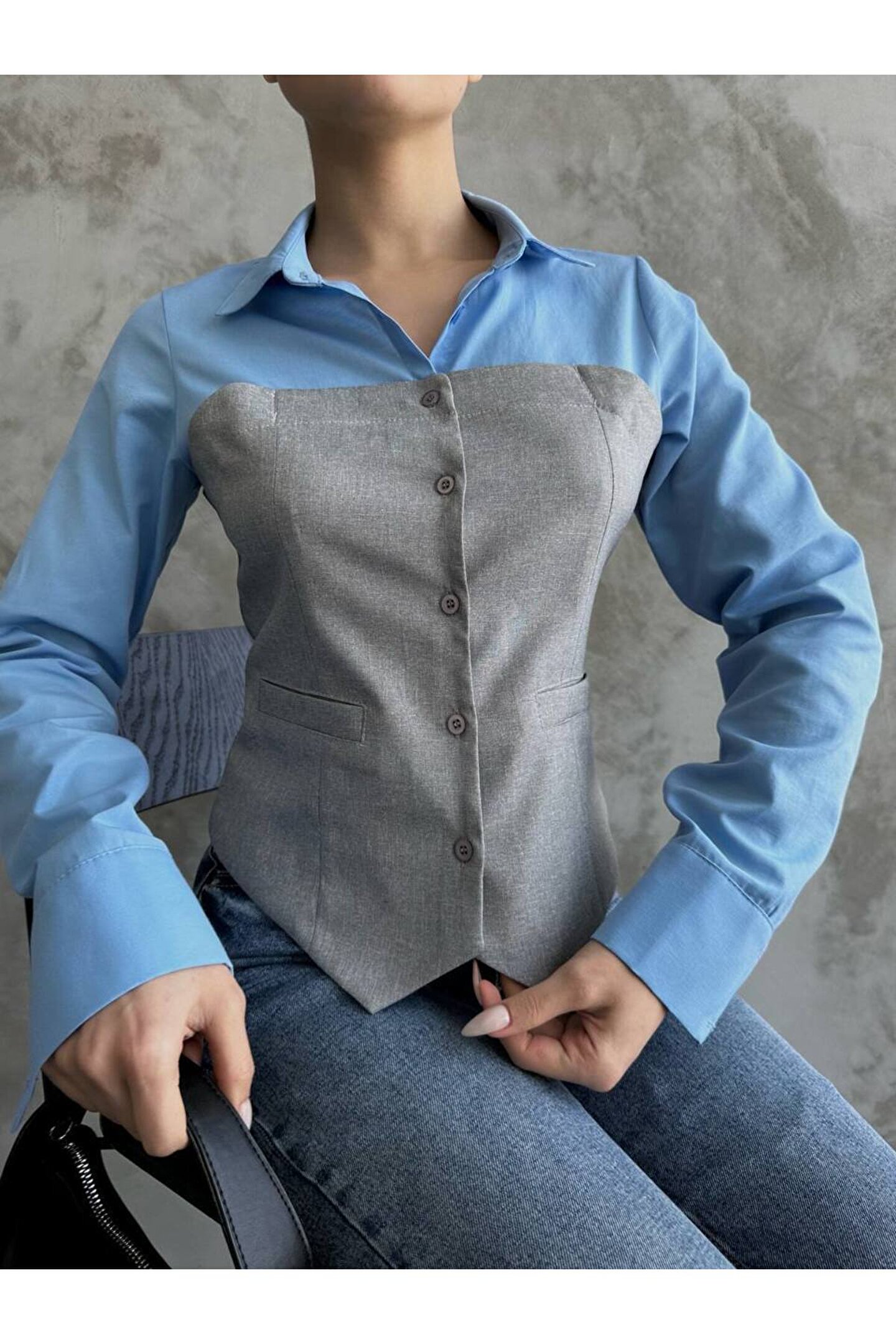 lolembutik mavi-gri ikili görünüm gömlek