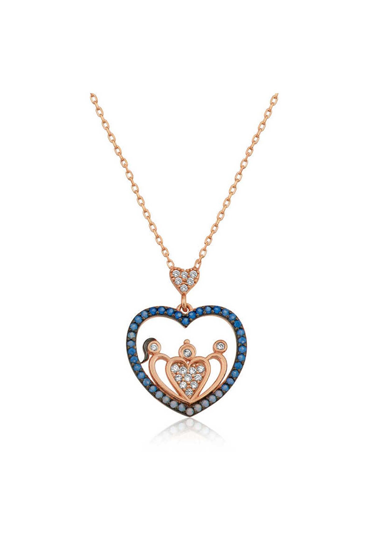Samur Parti Parti Aksesuar & Kostüm 925 Ayar Gümüş Rose Kalpli Aile Kolye
