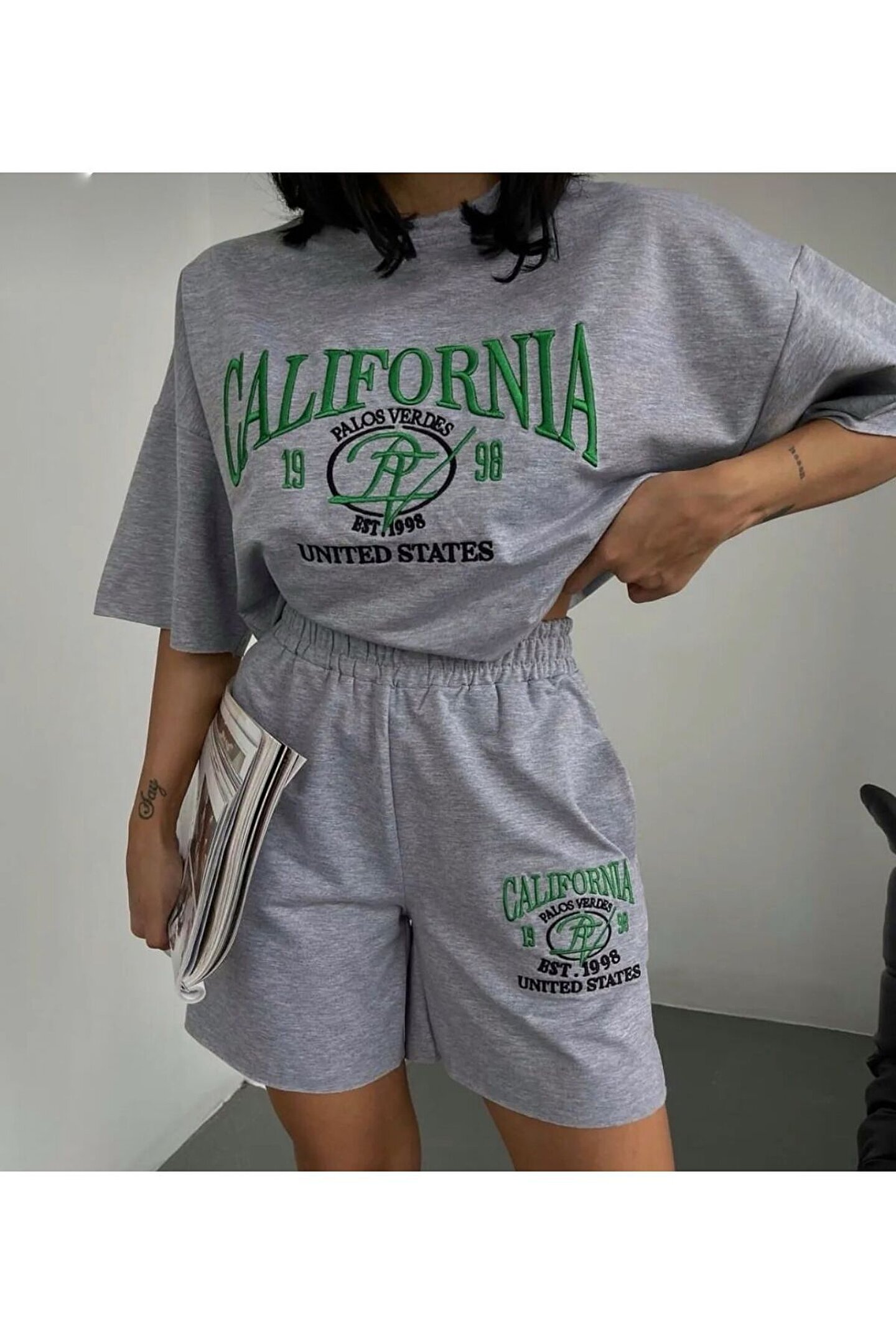 Kadın Iki Iplik Viskon Pamuk Kumaş Arma Detaylı Ikili Takım