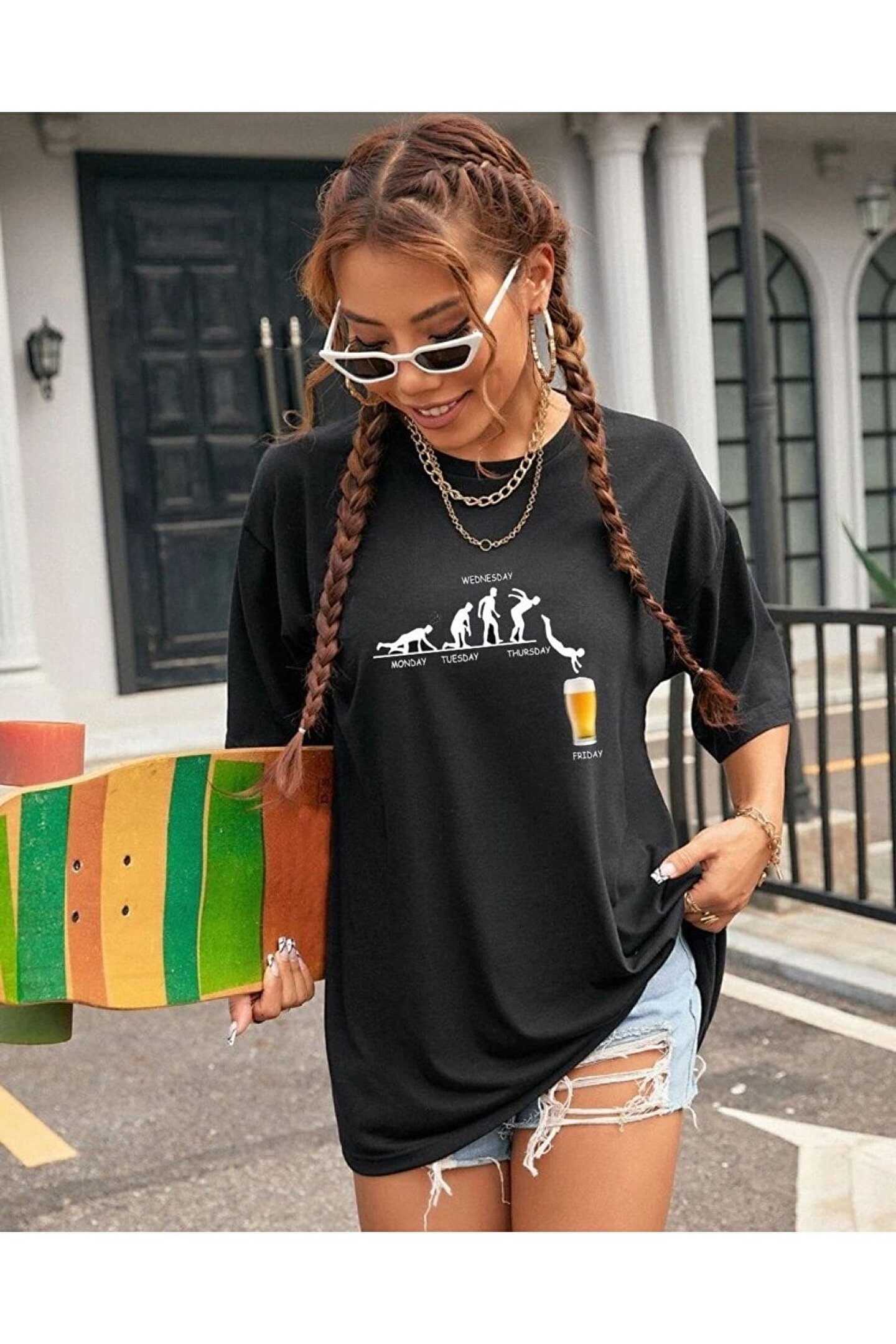Unisex Oversize Friday Bisiklet Yaka Siyah Tshirt
