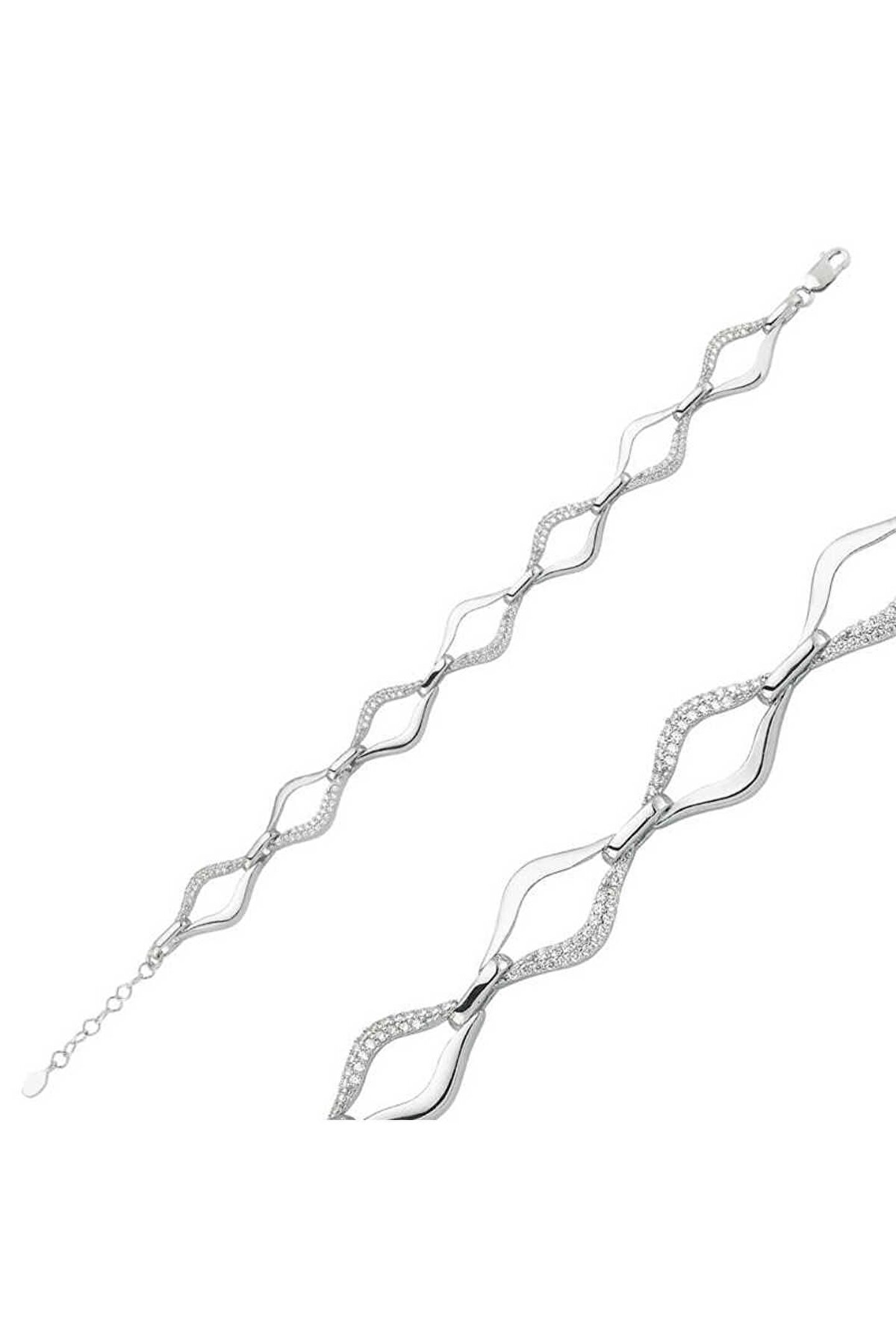 Samur Parti Parti Aksesuar & Kostüm 925 Ayar Gümüş Taşlı Dalgalı Bileklik