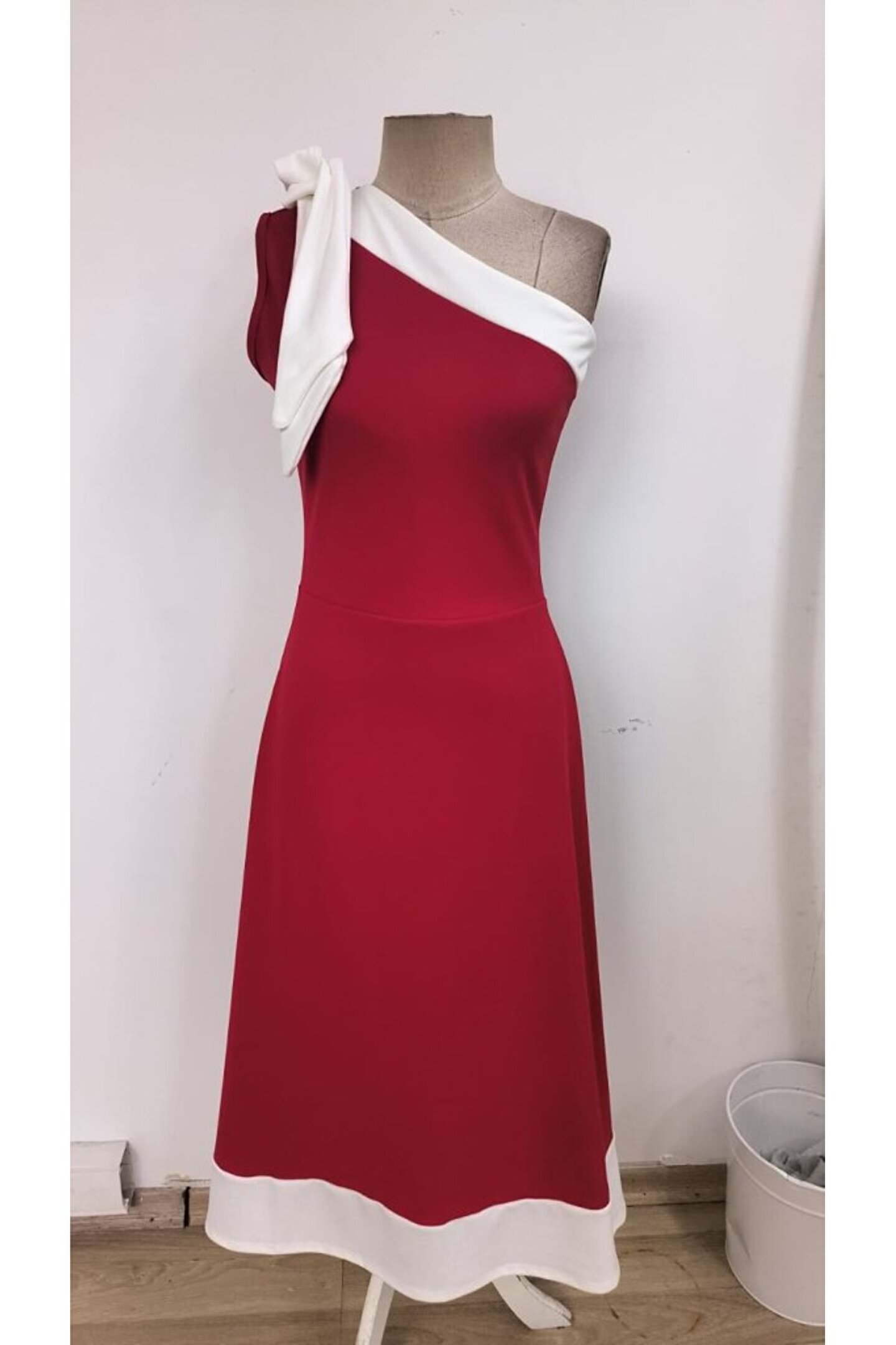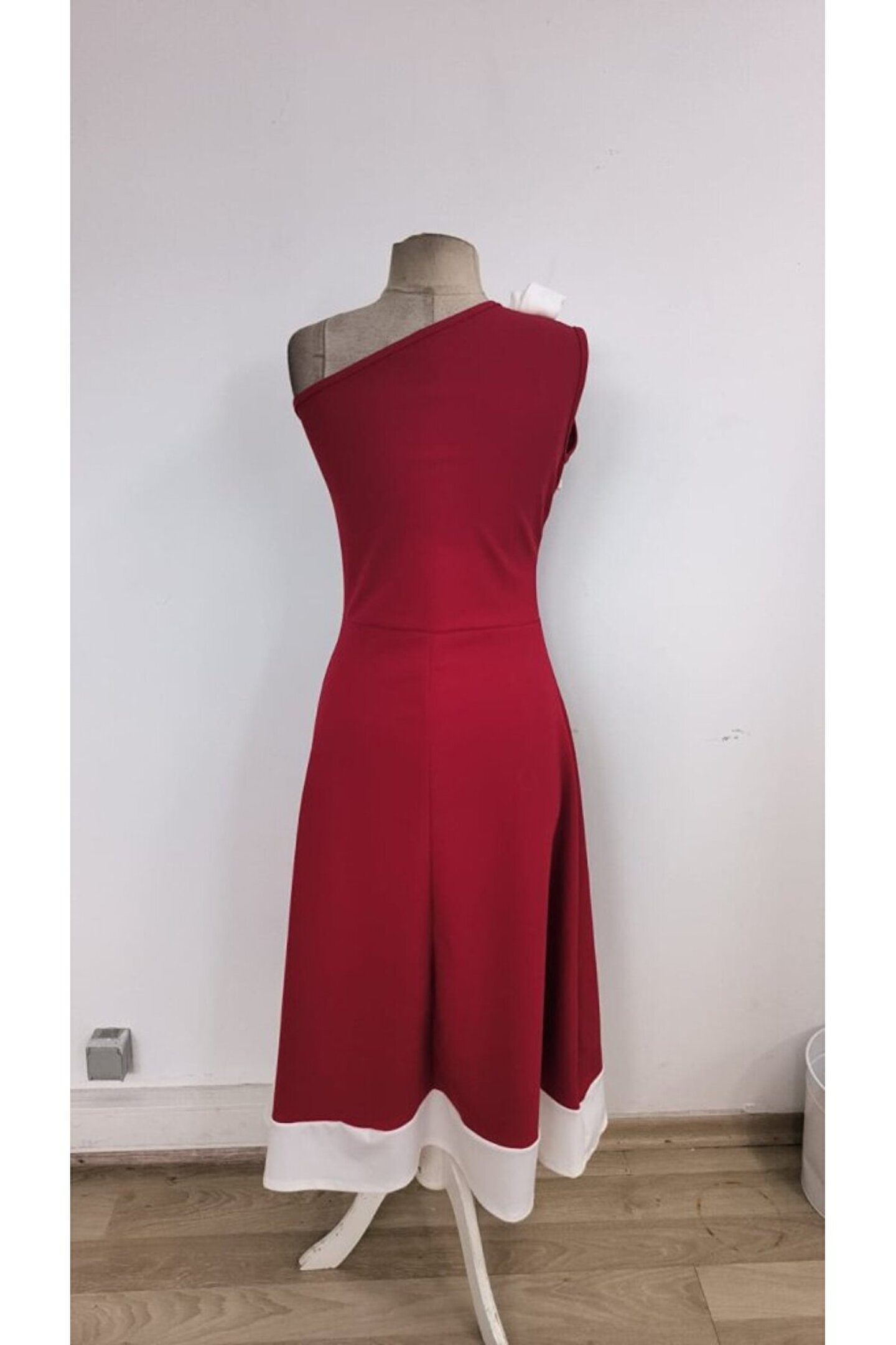 Luis & Lea EQURİ Kadın Tek Omuzu Açık Omuzlardan Kurdela Detaylı çift Renkli Ithal Krep Elbise