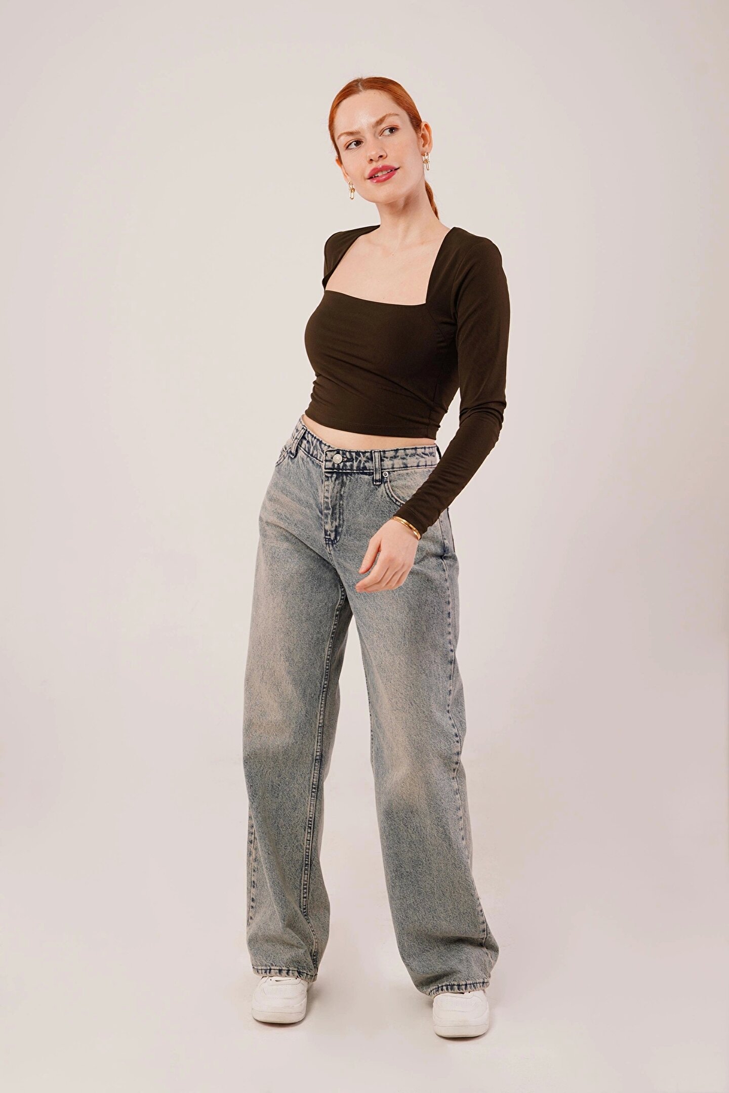 Luis & Lea Kare Yaka Basic Kahverengi Bluz