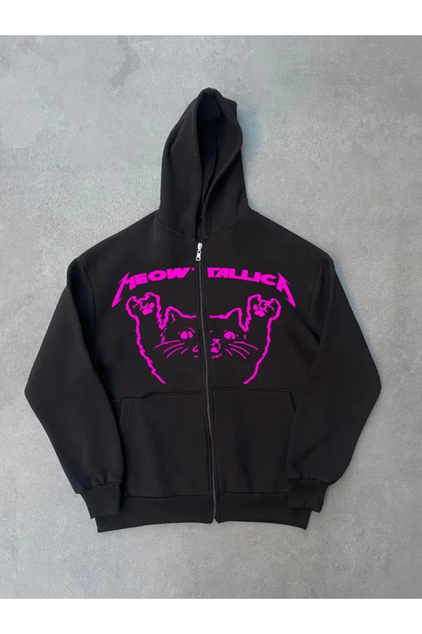LUMİART Baskılı Fermuarlı Kapüşonlu Hırka - Siyah