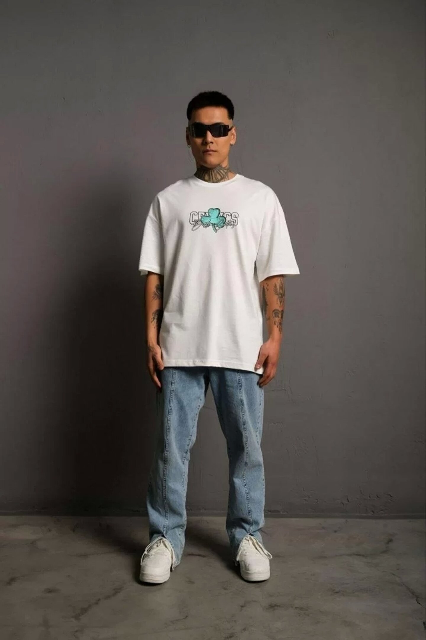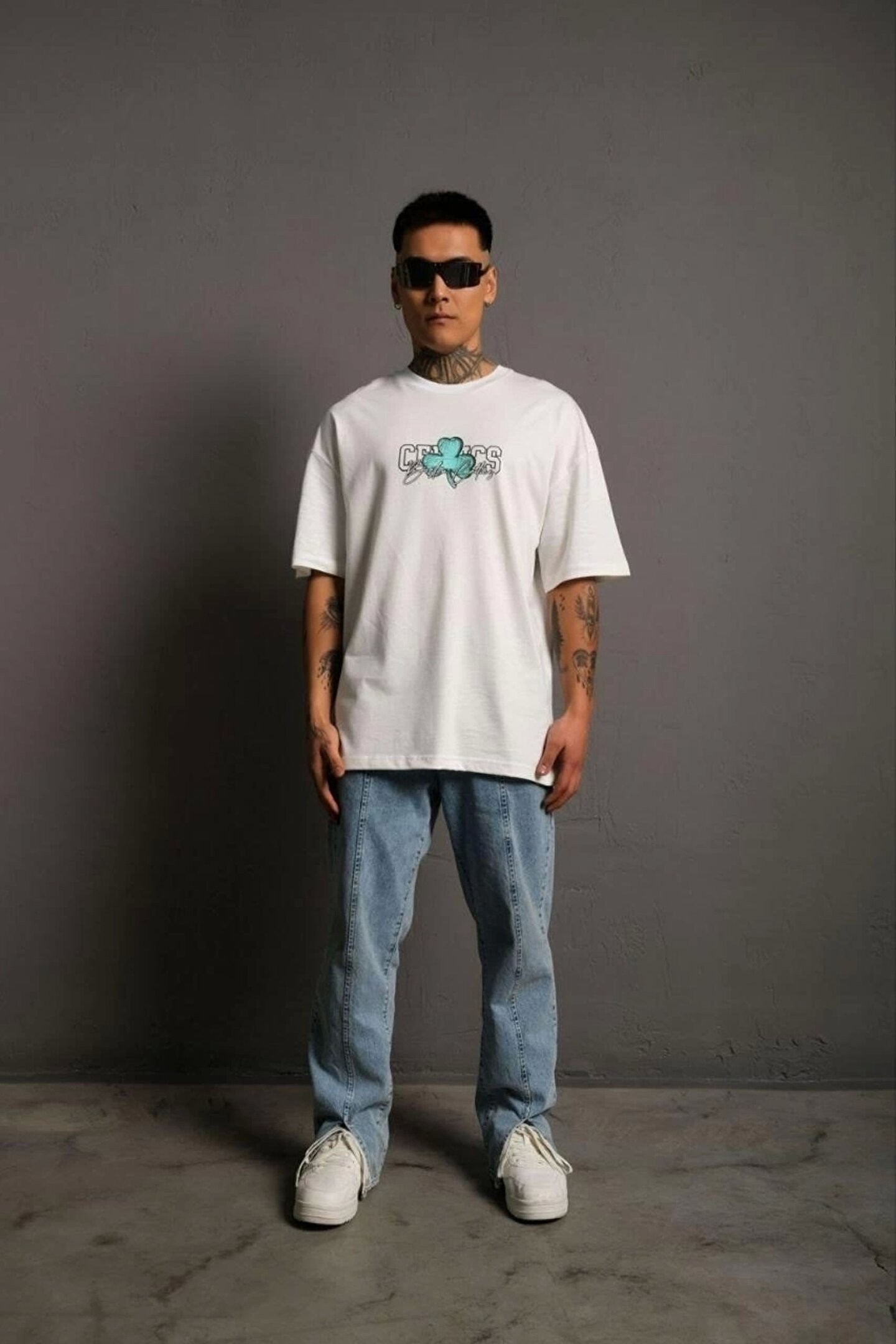 LUMİART Erkek Sırt Baskılı T-shirt - Beyaz