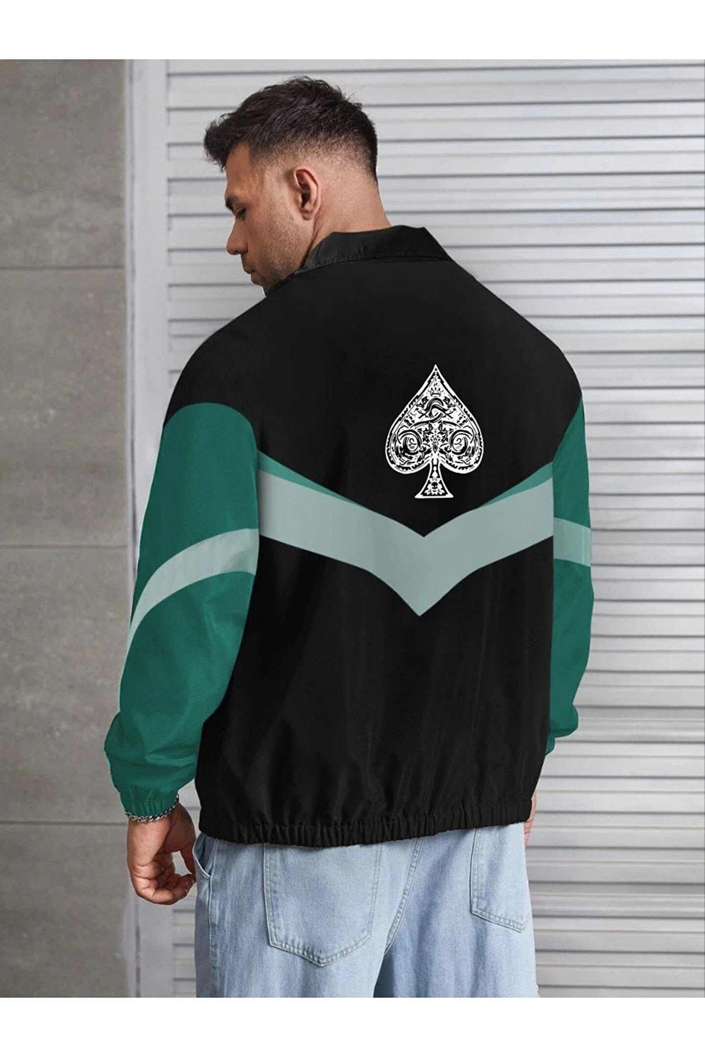 Unisex Uzun Kollu Paraşüt Kumaş Rüzgarlik - Siyah