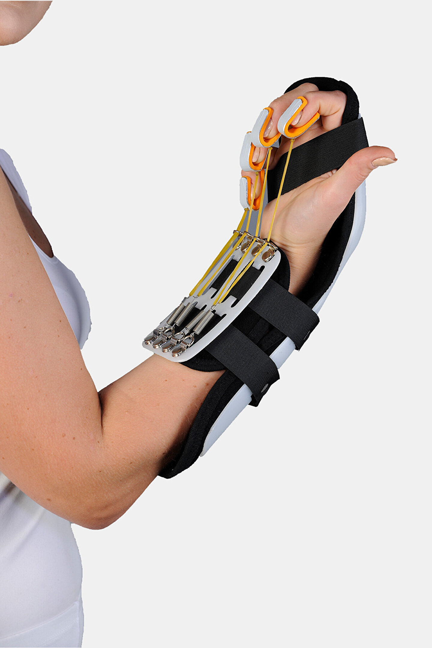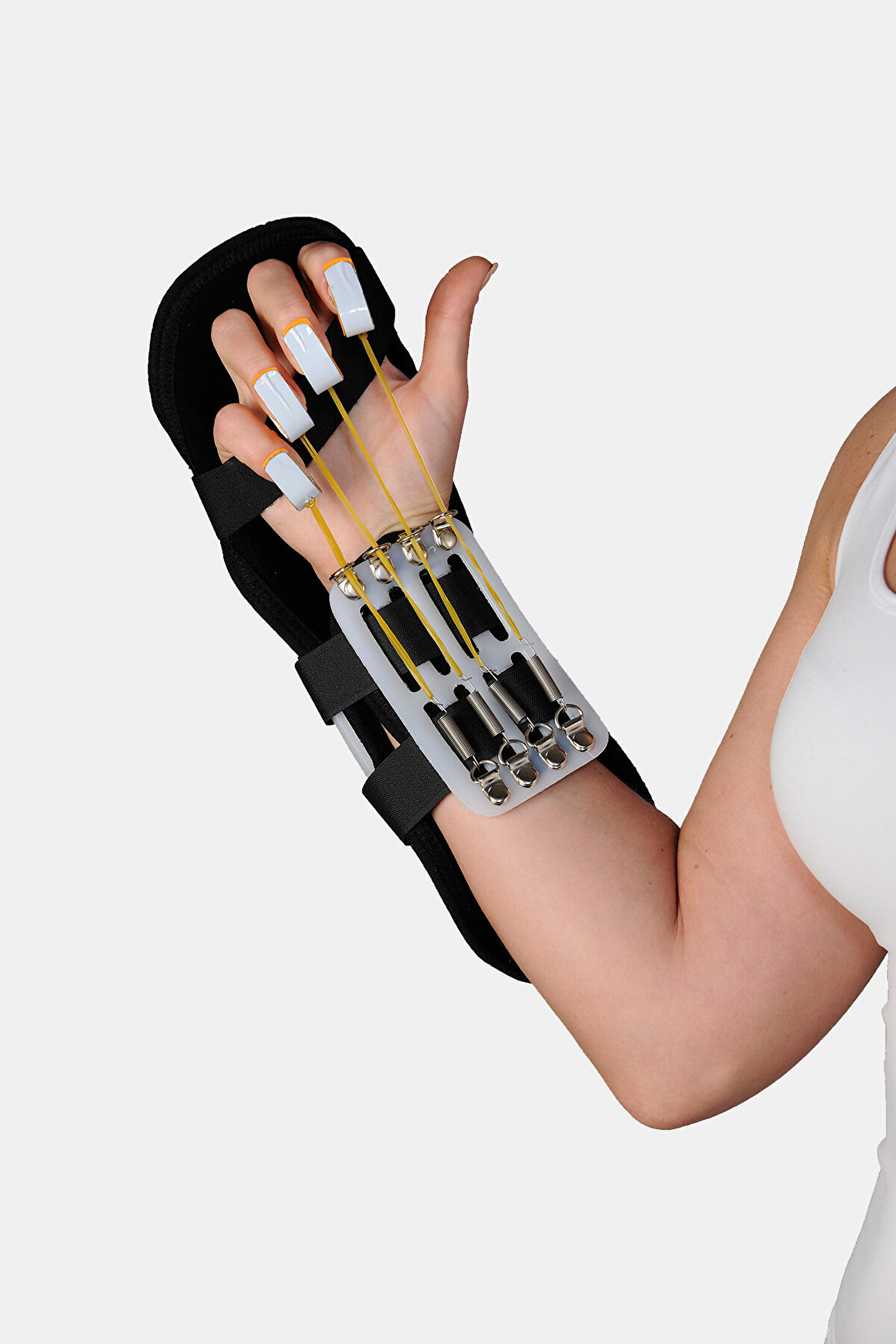 termoplastik kleinert ateli Felç, tendon ve ligament operasyonları sonrası, el parmak hareketlerinin kısıtlı olduğu durumlarda el parmaklarına egzersiz yaptırmak için kullanılır. ; El bilek ve parmakları pasif olarak ekstansiyonda tutar. ; Termoplastik malzemeden üretilmiş olup iç yüzeyi havlu kumaş kaplıdır. ; Beden ölçüsü : Small : 14 -18cm Medium : 19-22cm;