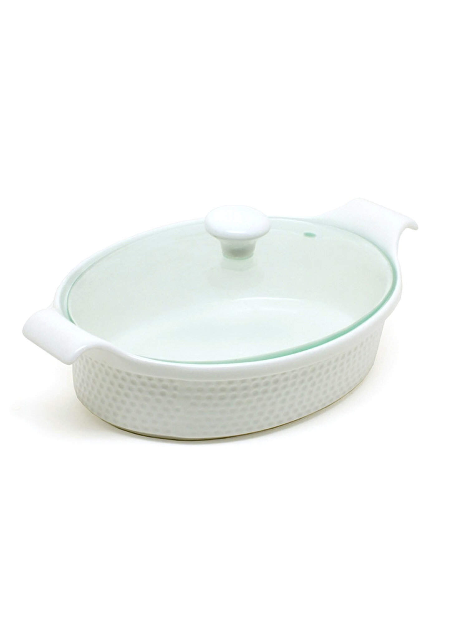 Sima Porselen Oval Fırın Kabı Cam Kapaklı 15x25cm