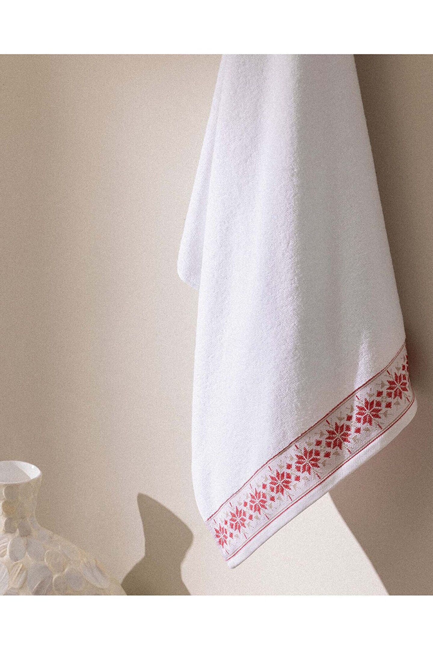Caresse %100 Pamuk Banyo Havlusu - Beyaz/Kırmızı - 70x140 cm