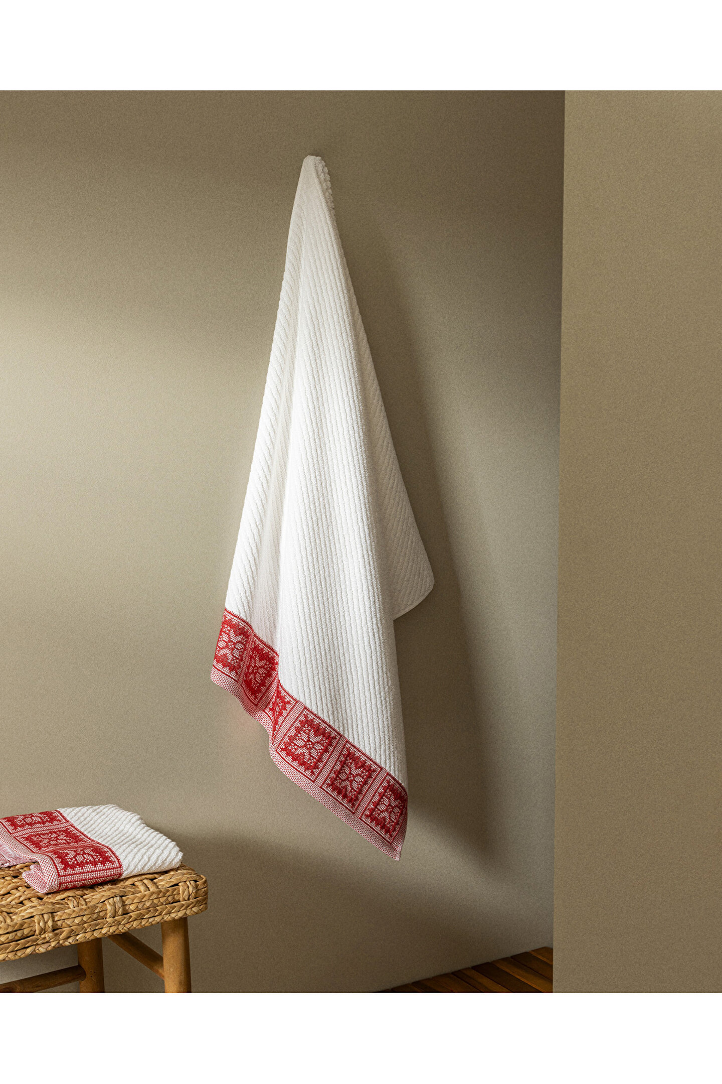 Zeste %100 Pamuk Banyo Havlusu - Beyaz/Kırmızı