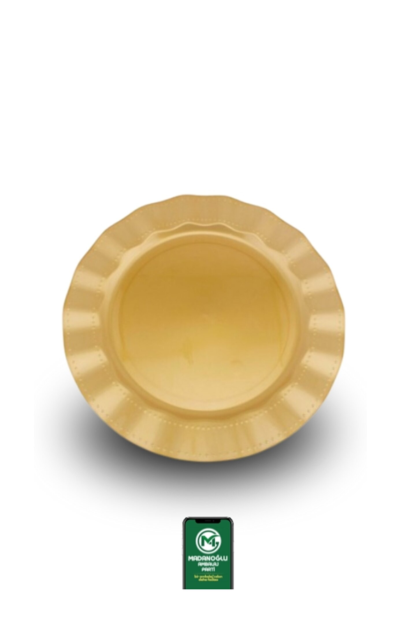 - Mika malzemesi sayesinde dayanıklı ve uzun ömürlü kullanım sunar.; - 26 cm çapındaki geniş taban tasarımı, servis yaparken kolaylık sağlar.; - Altın rengi ile şık ve modern bir görünüm kazandırır.; - Türkiye'de üretilmiş olması, yerel ekonomiye destek verirken kalite standartlarını korur.