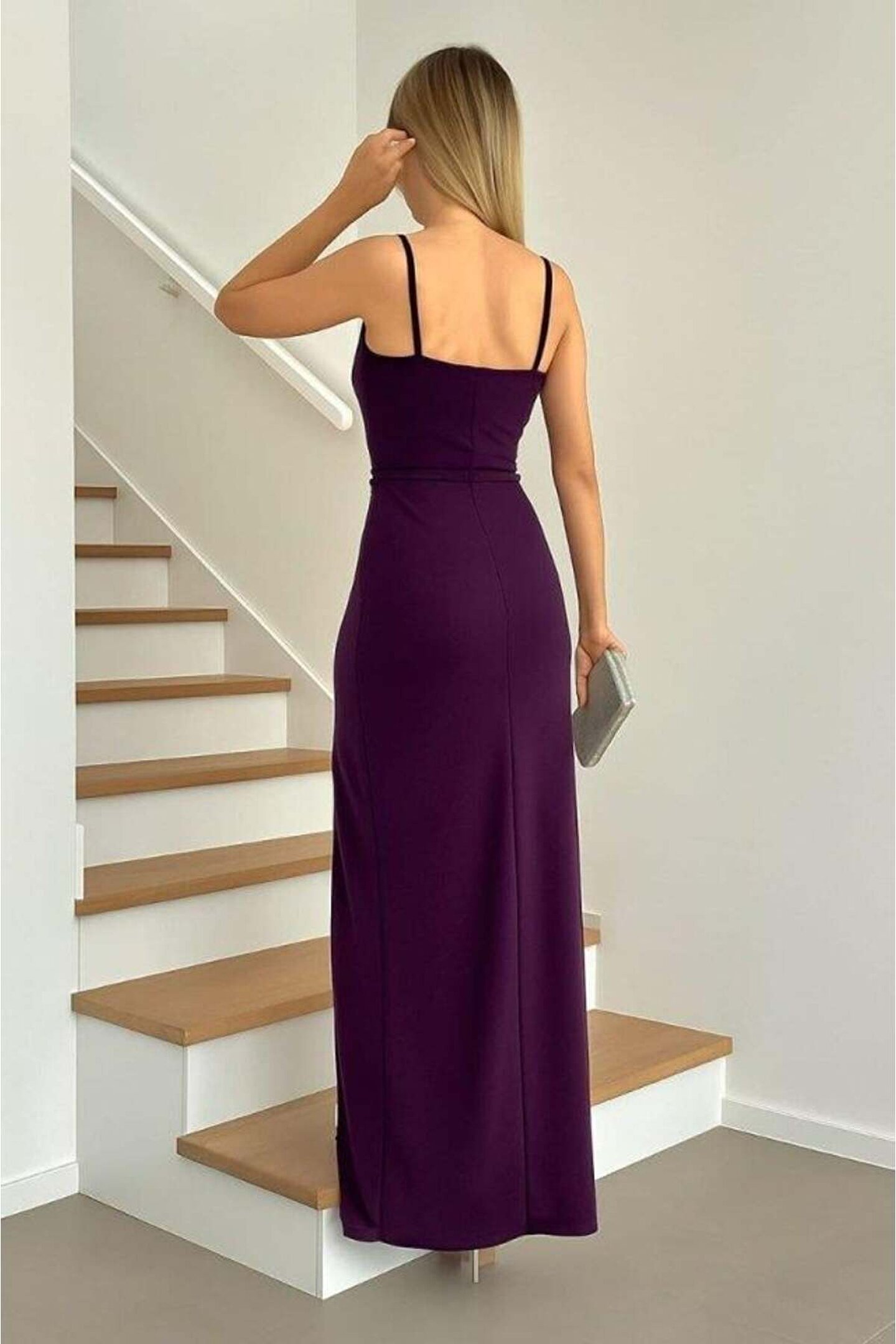 mall of gkc Kadın Dalgıç Kumaş V Yaka Yırtmaç Detaylı Maxi Boy Elbise