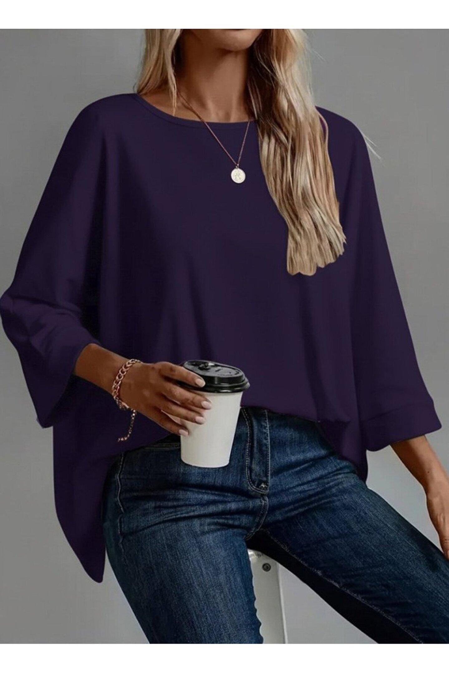 Kadın Truvakar Kollu Bisiklet Yaka Viskon Bluz