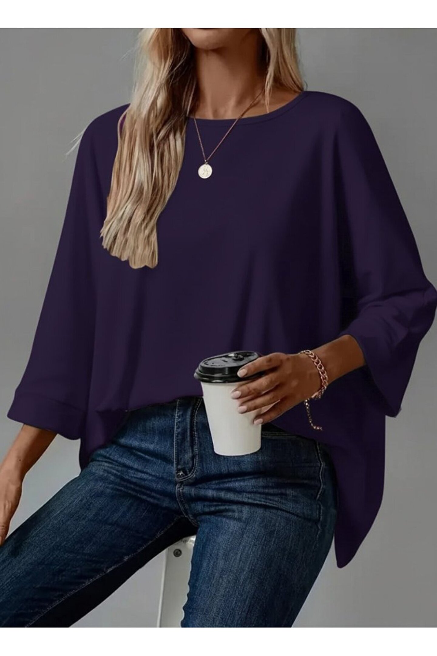 Kadın Truvakar Kollu Bisiklet Yaka Viskon Bluz