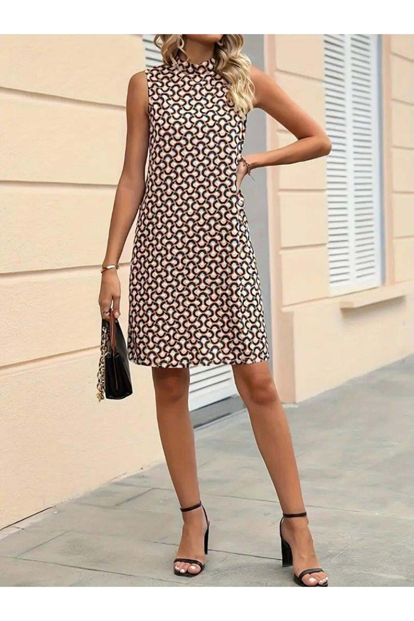 Kadın Balıkçı Yaka Kolsuz Desenli Dalgıç Elbise