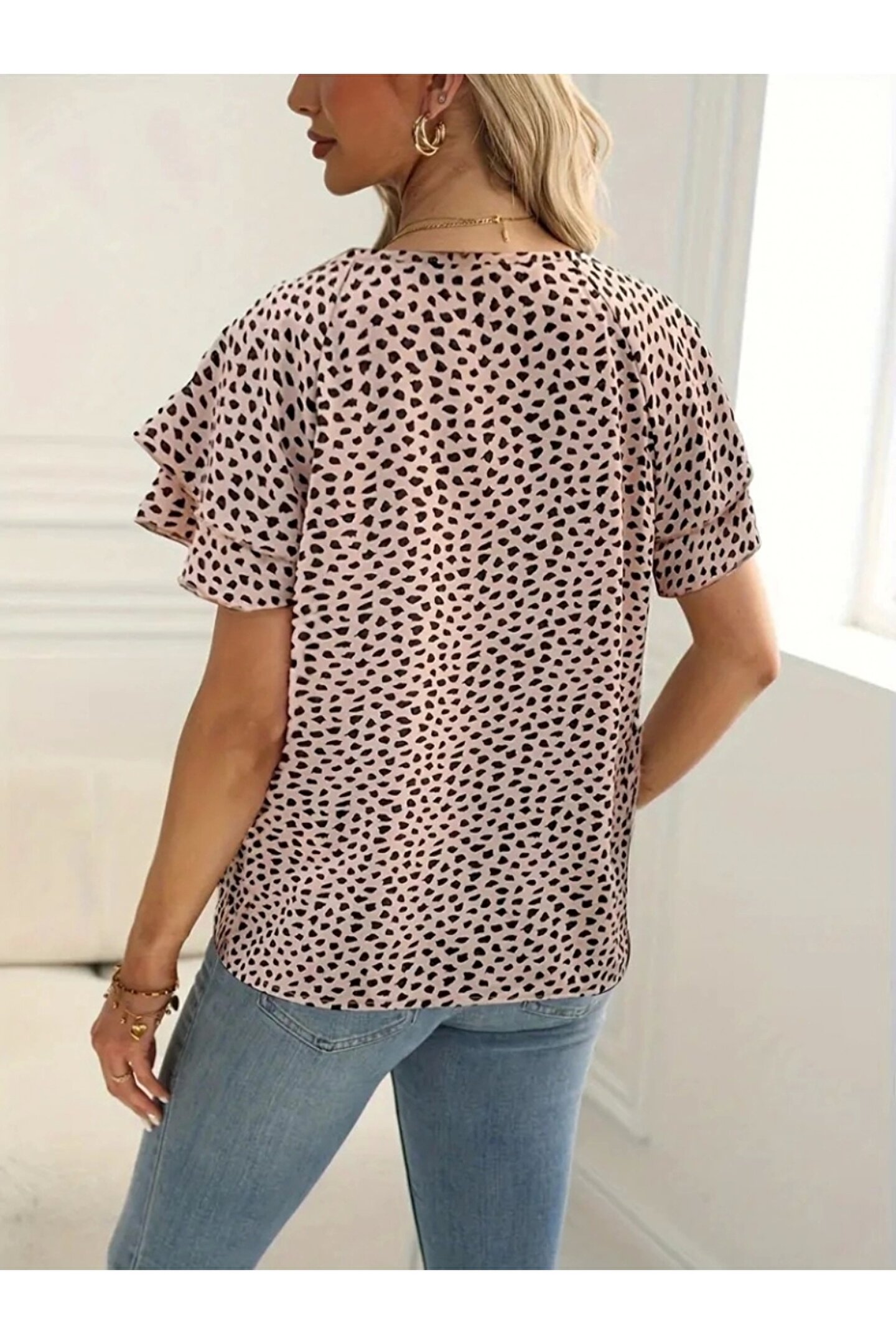 Kadın Kısa Kollu Kolları Volanlı Baskılı Süprem Bluz