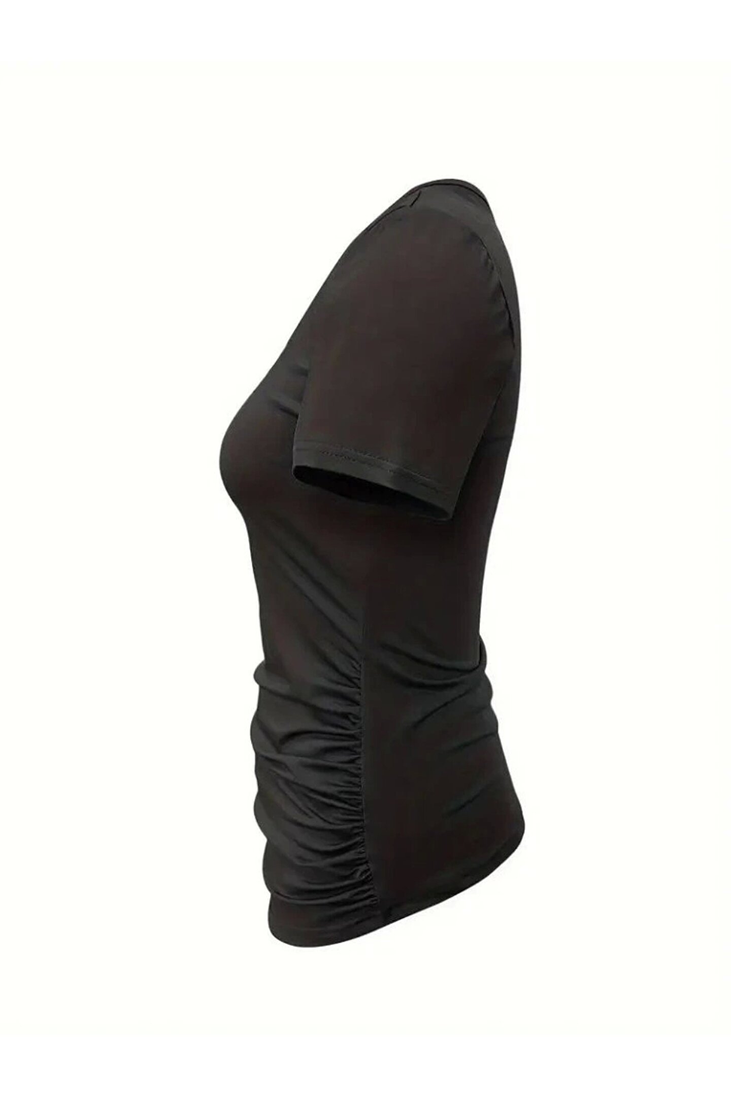 Kadın Kısa Kollu Yakası Açık Lazer Kesik Detaylı Viskon Bluz