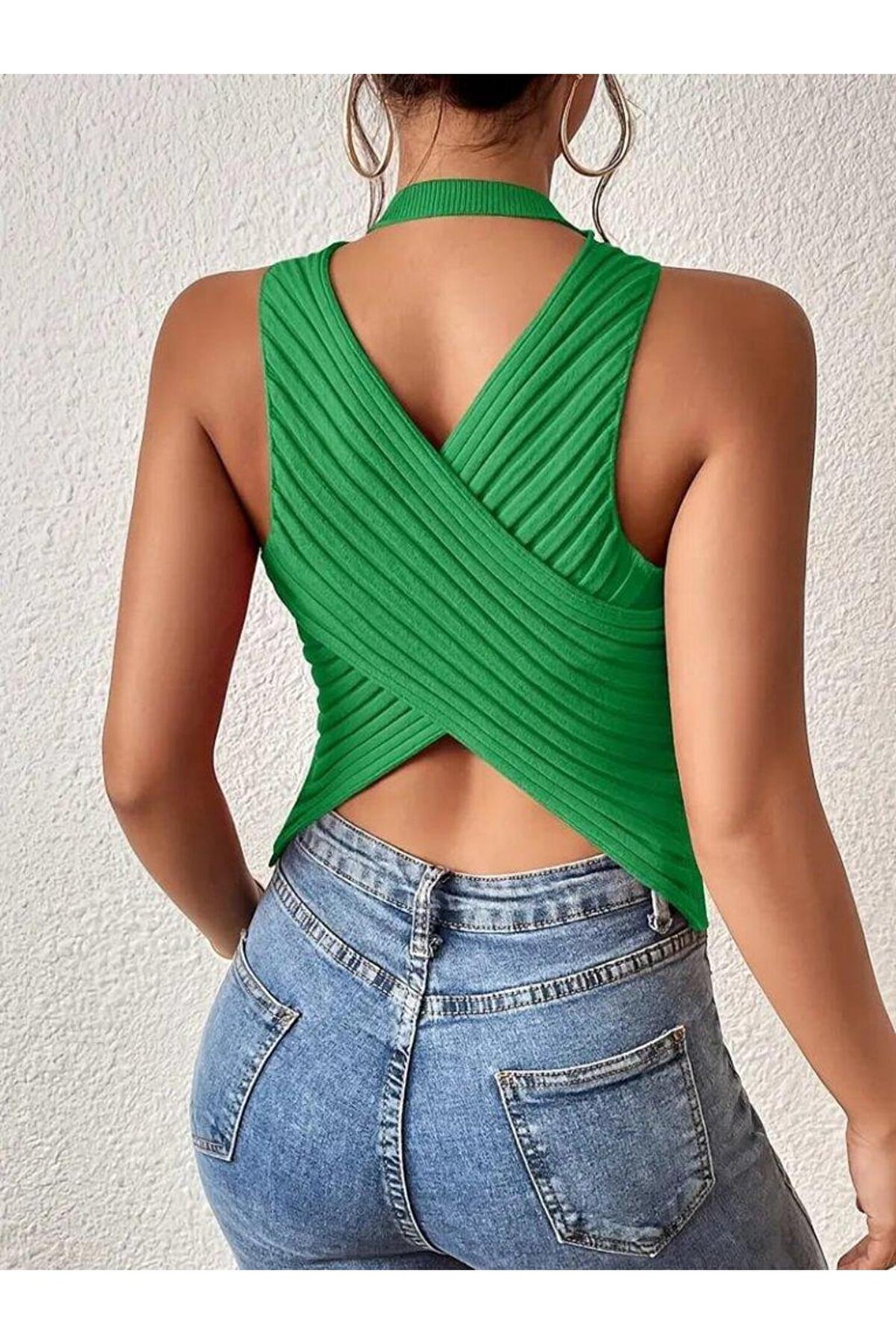 Kadın Sıfır Kol Sırt çapraz Detay Triko Bluz