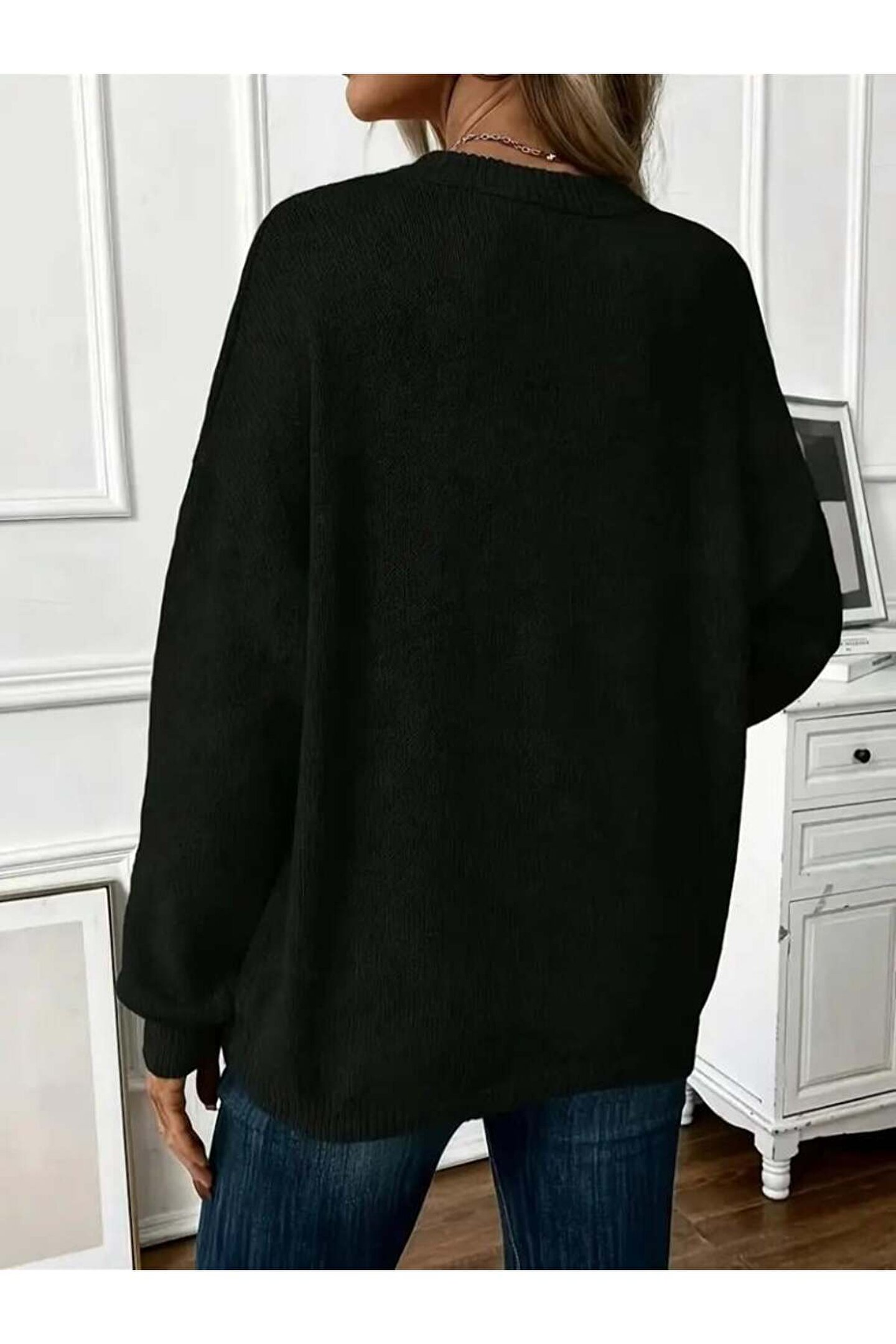 Kadın Uzun Kollu Bisiklet Yaka Düşük Omuz Detaylı Triko Bluz