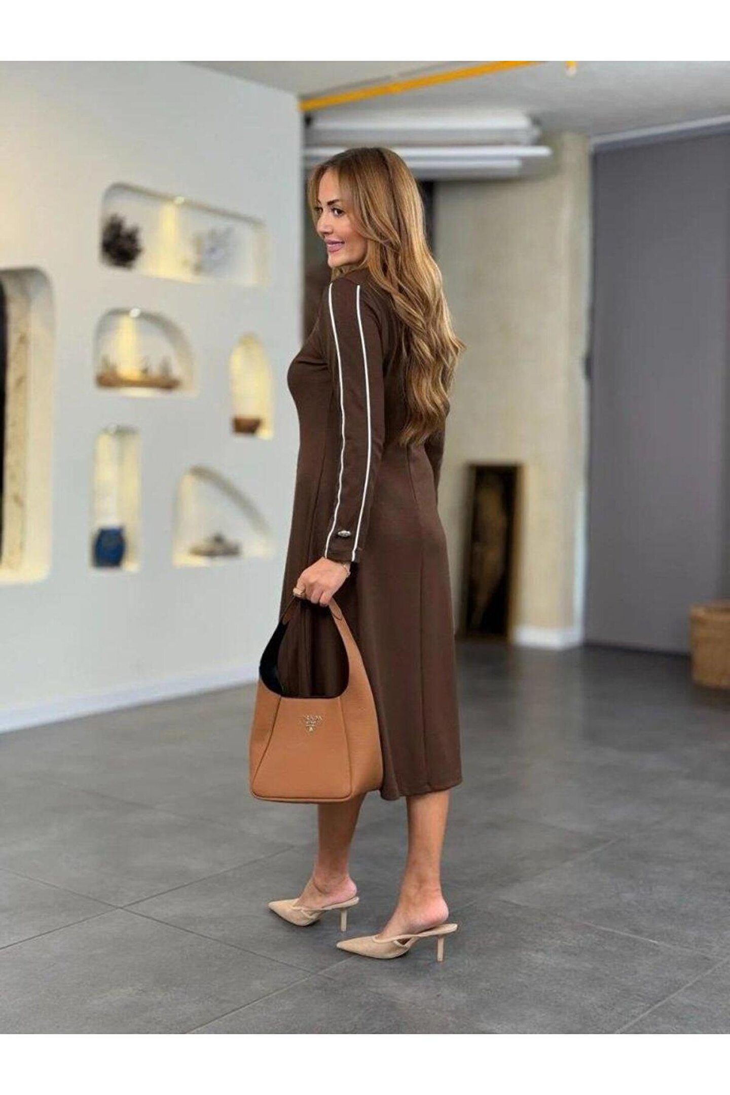 Kadın Uzun Kollu Bisiklet Yaka Midi Modal Elbise