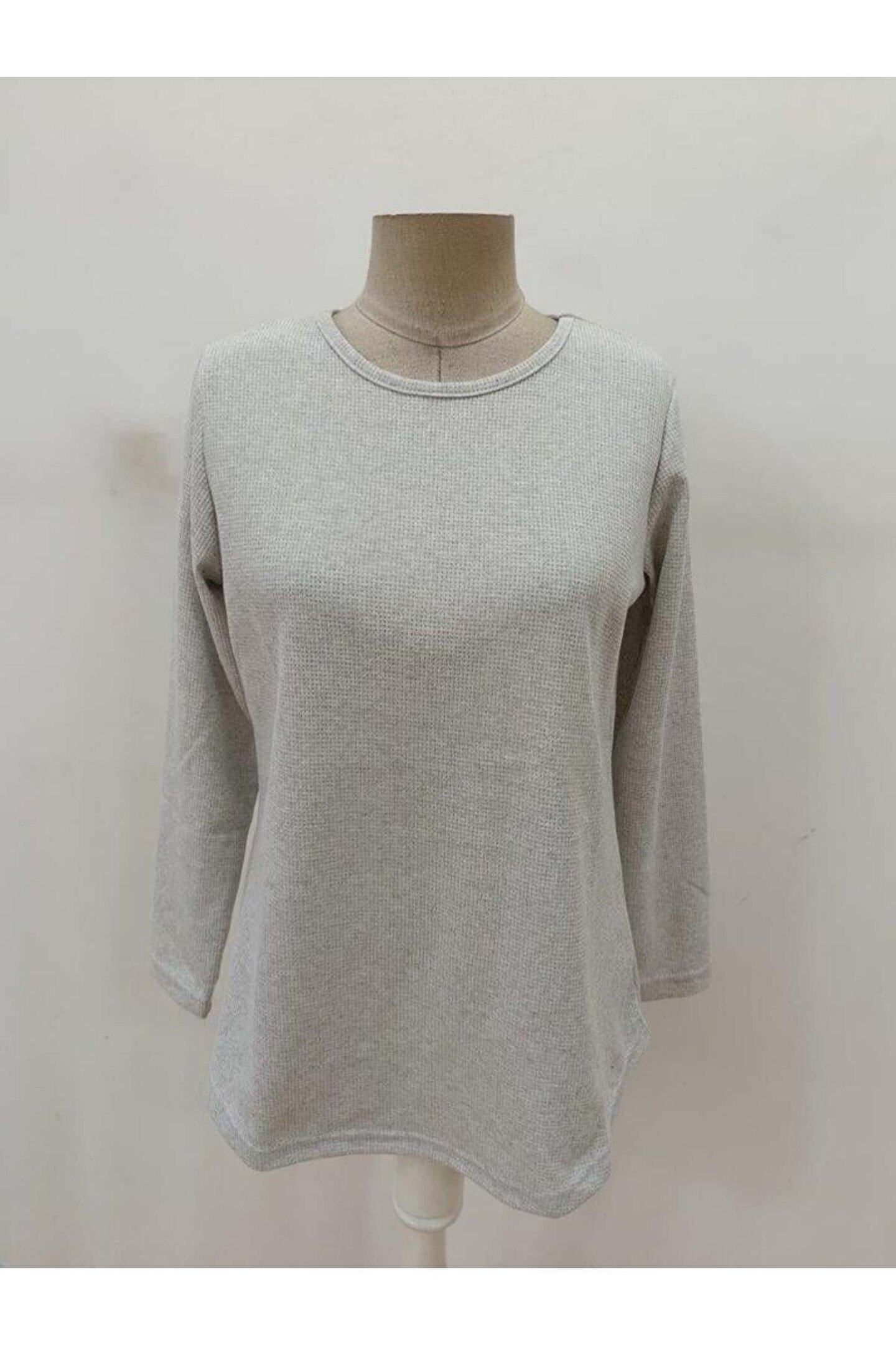 KadınUzun Kollu Yuvarlak Yaka Arkadan Düğmeli Waffle Bluz