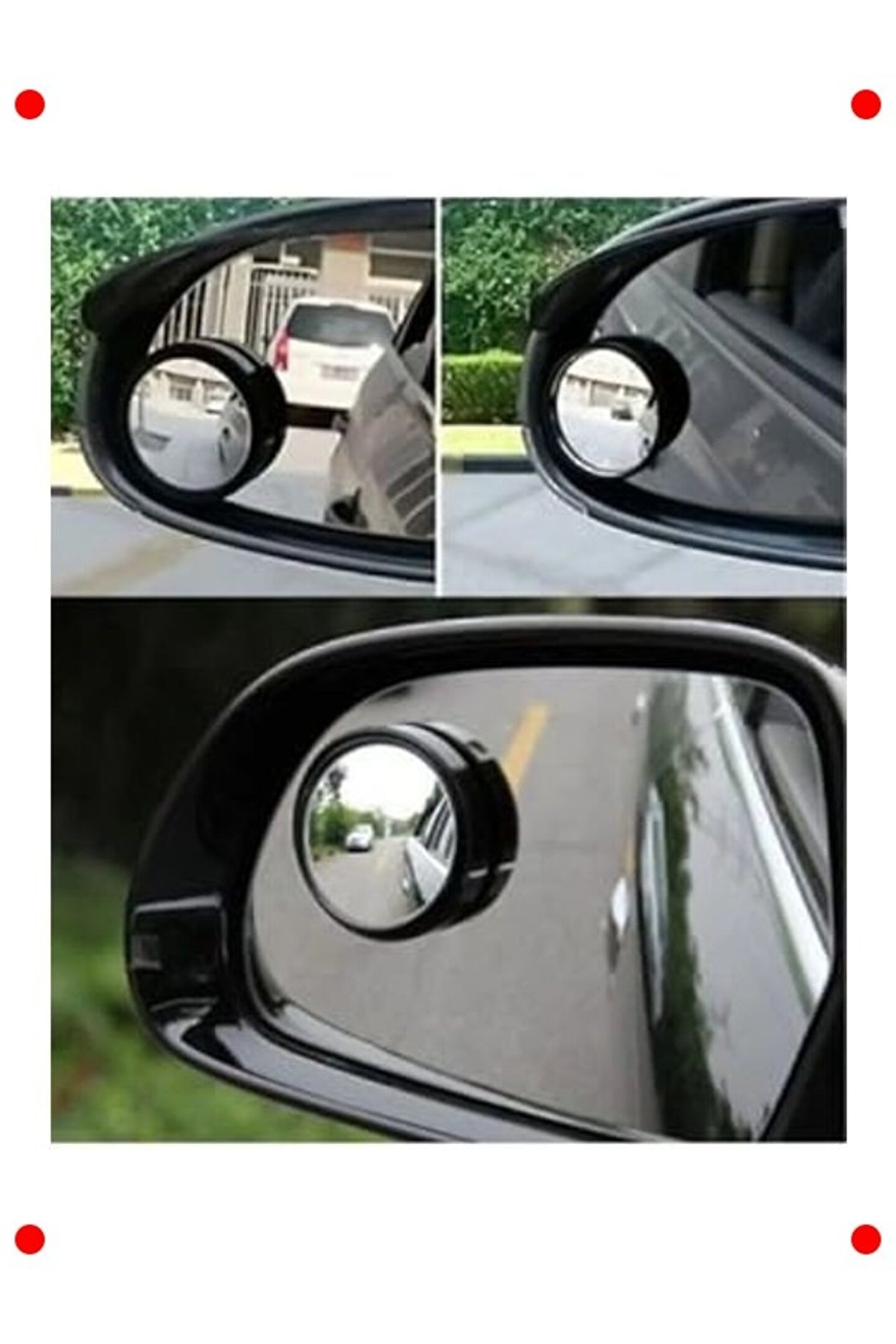 Sürüş ve park etme deneyizi güvenli ve kolay hale getirin.; Bu 2 adet yuvarlak kör nokta aynası, aracınızın yan aynalarına eklenerek kör noktalarınızı genişletir ve görünürlüğünüzü artırır.; Şerit değiştirme, dönüş yapma ve özellikle park etme sırasında büyük kolaylık sağlar.; Geniş açılı tasarımı sayesinde çevrenizi daha net görmenize olanak tanır.; Çoğu araç aynasına kolayca yapıştırılabilen güçlü yapışkan tabanı bulunur.; Ayarlanabilir yapısı sayesinde istediğiniz görüş açısını elde edebilirsiniz.; Dayanıklı malzemeden üretilmiş olup, dış koşullara karşı dirençlidir.; Her sürücü için vazgeçilmez bir güvenlik aksesuarıdır.