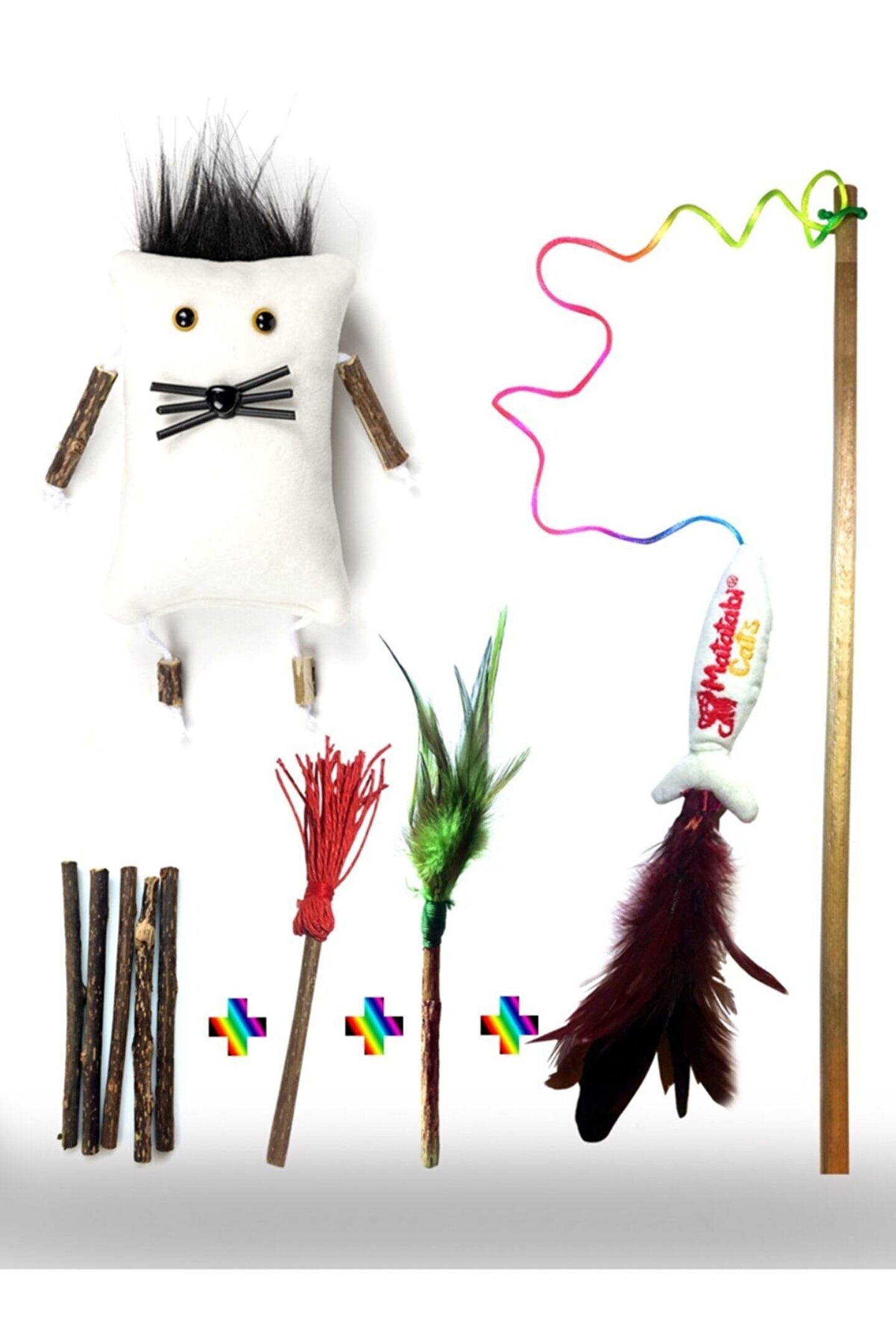 MATATABİ CATS Matatabi Tanışma Seti Doğal Kedi Çiğneme Çubuğu, Kedi oltası, Peluş Sesli Kedi Oyuncak