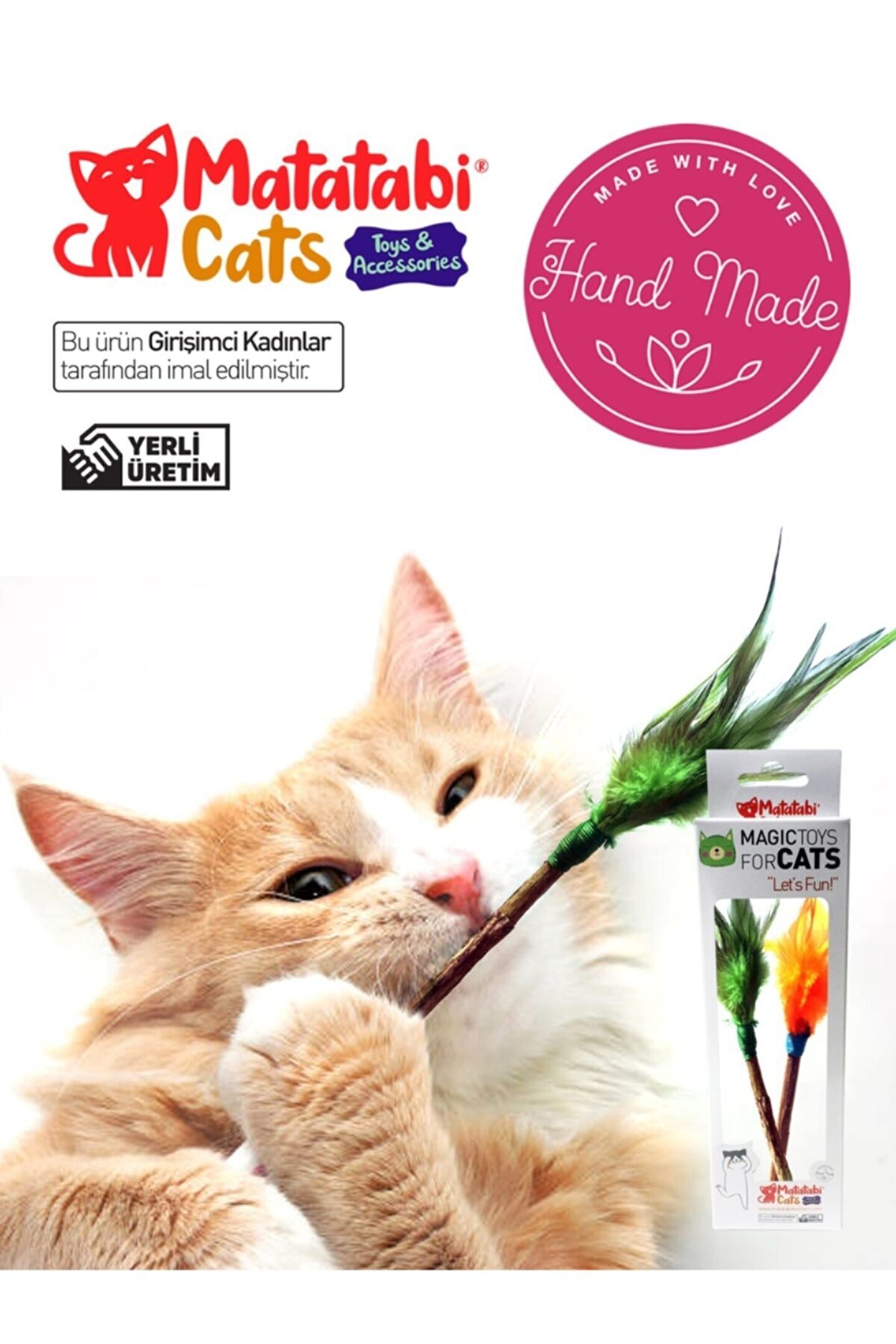 Matatabi Tüylü çubuk Matatabi ağacının seçilmiş çubukları ile kedinizin severek oynayacağı tüylerin(doğal kuş avcısı oldukları için tüy kedinize zarar vermez) eğlenceli birleşiminden oluşur; Kedilerin doğal ağacı kemirmesi sayesinde diş temizliği yapılırken ne kadar çok eğlendiğini farkedeceksiniz; Kediniz matatabi çubuğunu doğal dürtüsüyle parçalayabilir,yiyebilir; doğal ve sağlıklıdır; Tüy renklerinde tercih belirtilmediği takdirde farklı renkler gönderilebilir; çubuk kalınlığı 06mm; 10mm Kedinizin Matatabi Çubuk ile uzun süreli bir oyun arkadaşı olmasını isterseniz oyundan sonra kaldırın ve bir süre sonra tekrar verin boy 18 cm (yaklaşık) kutu içinde 2 adet ürün renkleri farklılık gösterebilir; özel taleplerin bildirilmesi rica olunur;