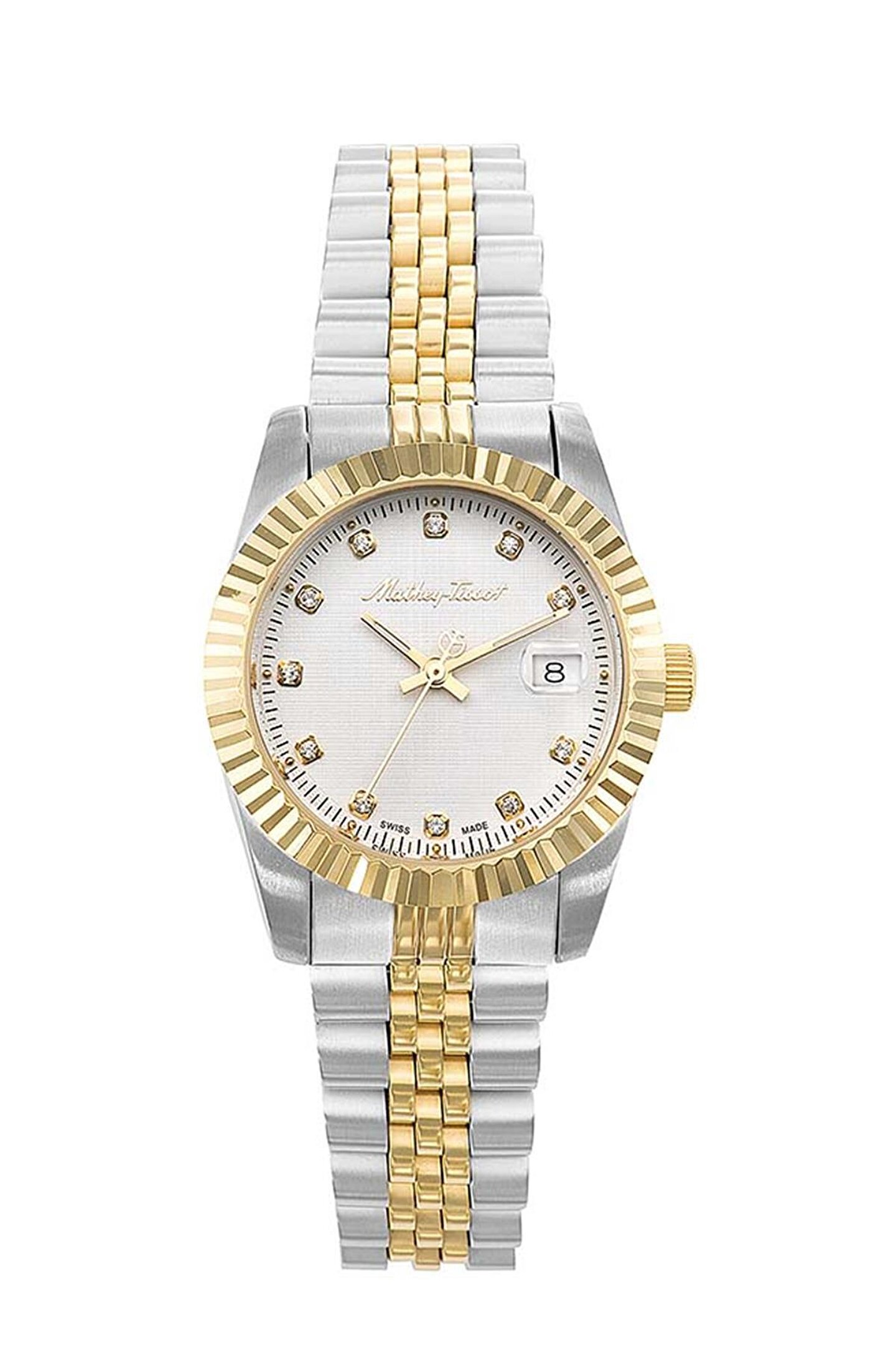 Marka Mathey Tissot Cinsiyet: Kasa Cinsi: Çelik Kasa Rengi: Metal Kordon Cinsi: Çelik Kordon Rengi: Sarı Beyaz Kadran: Beyaz Takvim Var Cam: Mineral Kasa Ebatı: 32mm Menşii: Swıss Madde