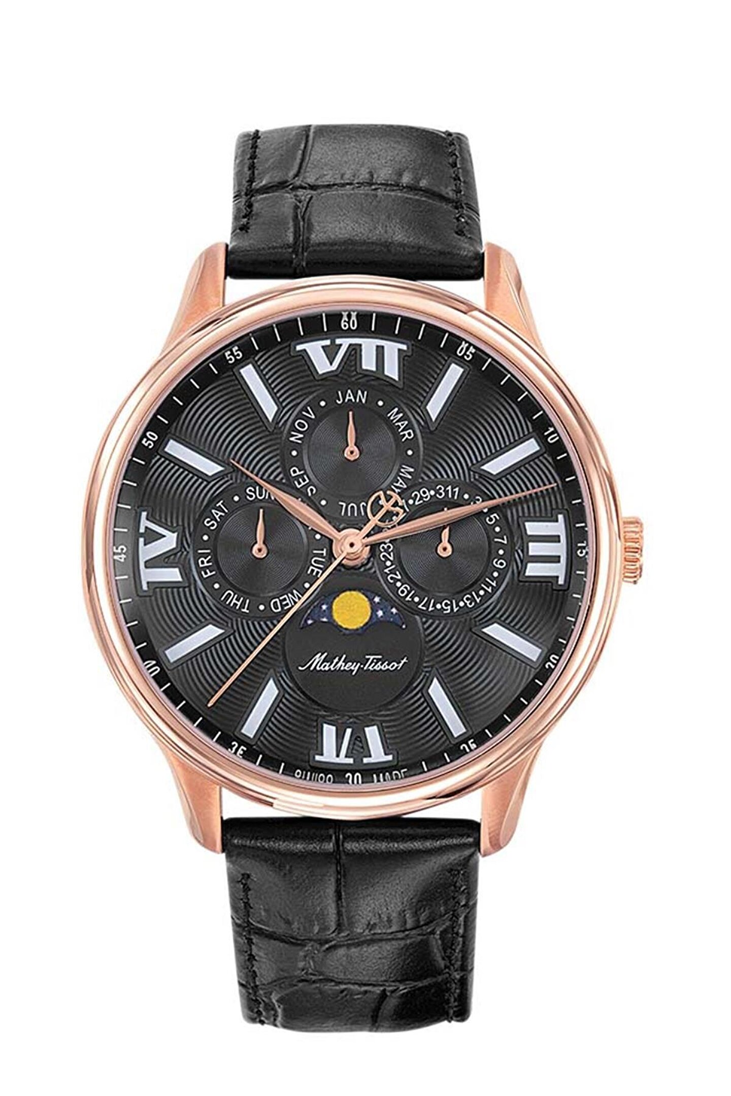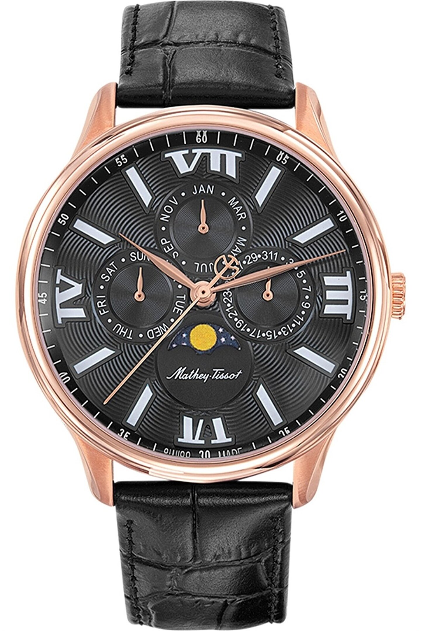 KASA: ÇAP 42 mm KASA KALINLIĞI 11 mm SU DİRENCİ 5 ATM (50 metre, 165 fit) KASA: ARKA PLAKA Paslanmaz Çelik 316L KASA: MALZEME Paslanmaz Çelik 316L CAM Safir Kaplamalı BİLEZİK: RENK Siyah BİLEZİK: TOKA Kelebek Toka BİLEZİK: GENİŞLİK 20 mm BİLEZİK: MALZEME Deri KADRAN: RENK Siyah KADRAN: MALZEME Pirinç CİNSİYET Erkek Ay Durumu, Gün, Tarih ve Ay MAKİNA: İSİM RONDA 706.3 KÖKEN İsviçre yapımı MAKİNA: TİP Kuvars
