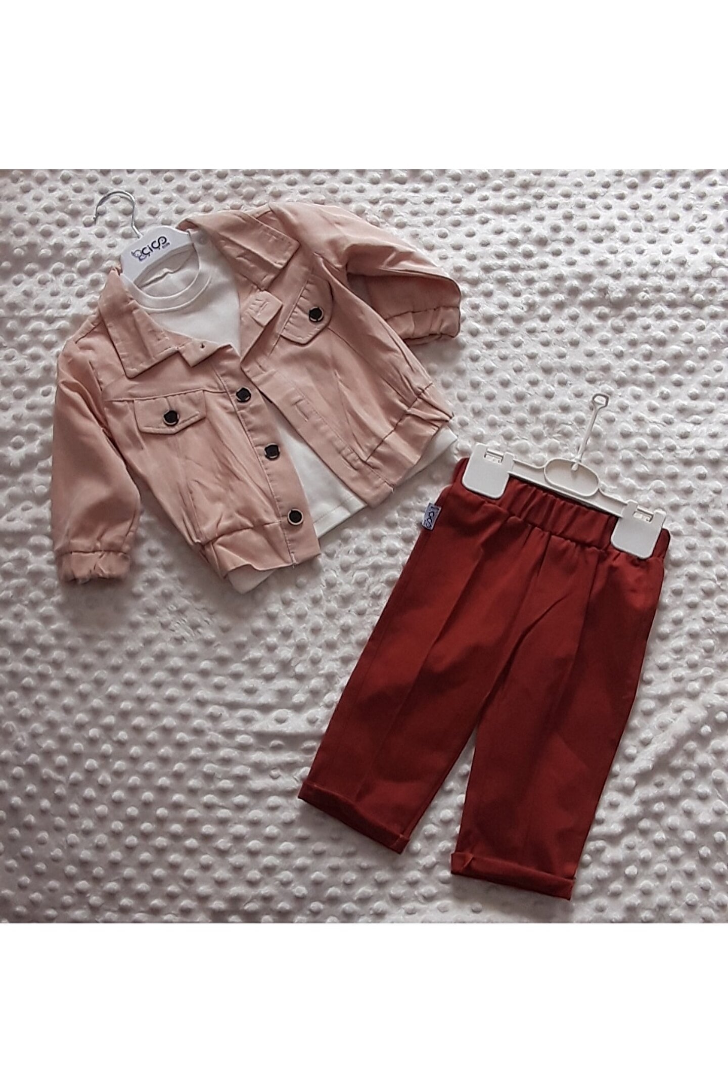 Rahat ve şık bir görünüm için tasarlanmış, beyaz body'li ten rengi ceket ve kiremit rengi pantolon 3'lü takım; Standart boy kesimi ile günlük kullanım için ideal konfor ve şıklığı bir arada sunar; Beyaz body, ten rengi ceket ve kiremit rengi pantolon kombinasyonu, modern ve dinamik bir stil oluşturur; Her türlü ortama uyum sağlayacak şekilde tasarlanmış bu takım, işlevsellik ve estetiği birleştirir;